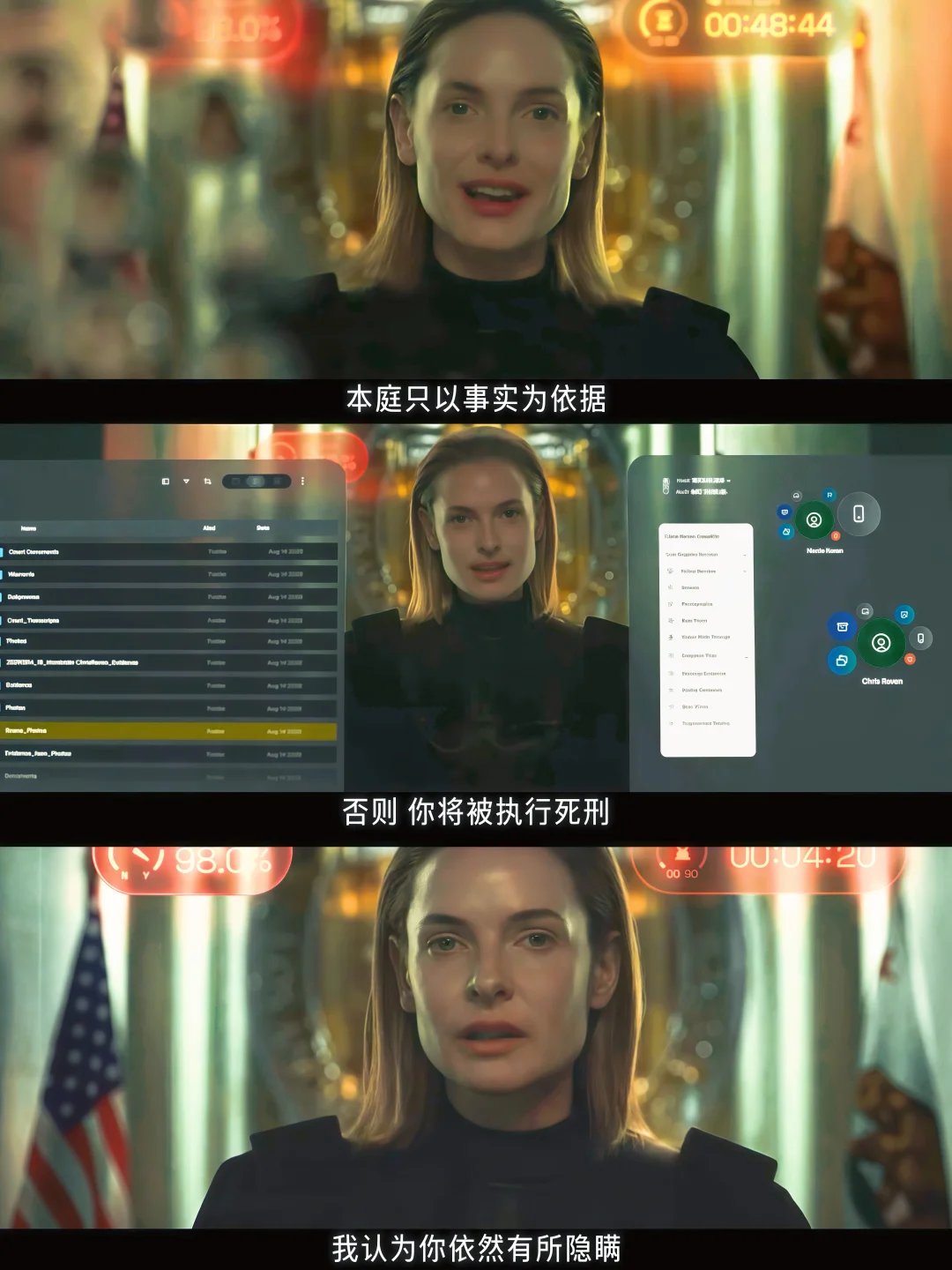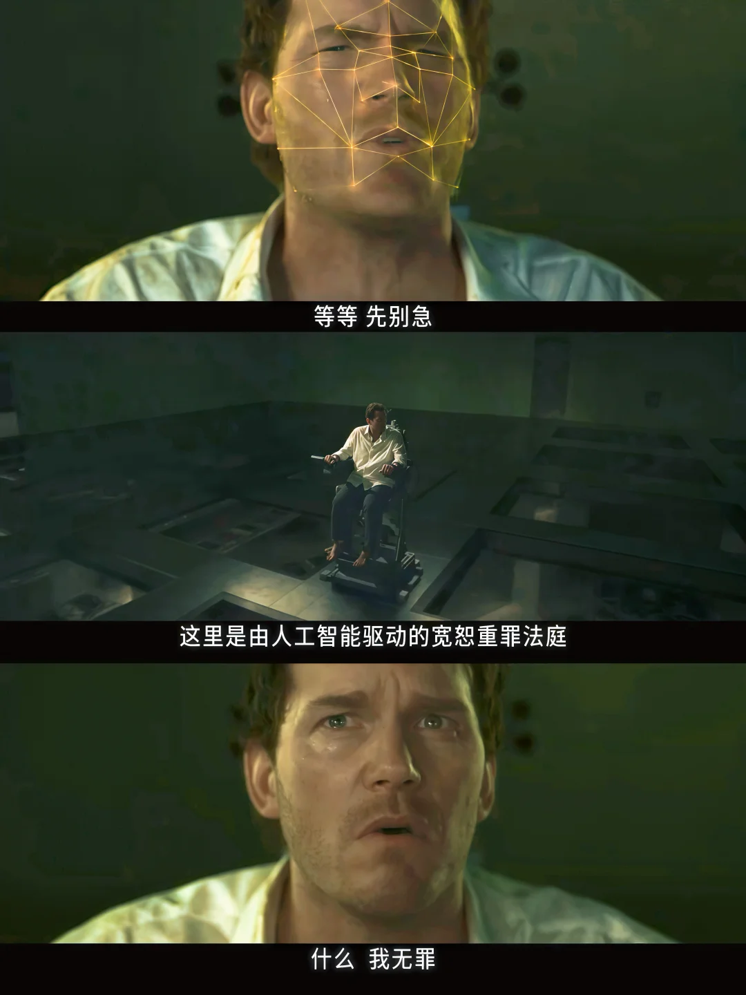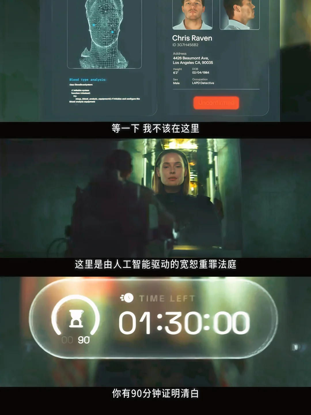 🆘剧情真的太会抓眼球了:男主雷文,一个洛杉矶刑事犯罪科的顶级警探,转头就被自己长年力挺的AI法庭判了“鲨妻罪”!关键是这AI判官只看数据证据,凭着一堆监控记录、行踪轨迹、甚至消费记录,就冷冰冰甩出来“97.5%有罪率”,还给了个窒息期限——90分钟自证清白,超时直接执行亖刑,连上诉的机会都没有!