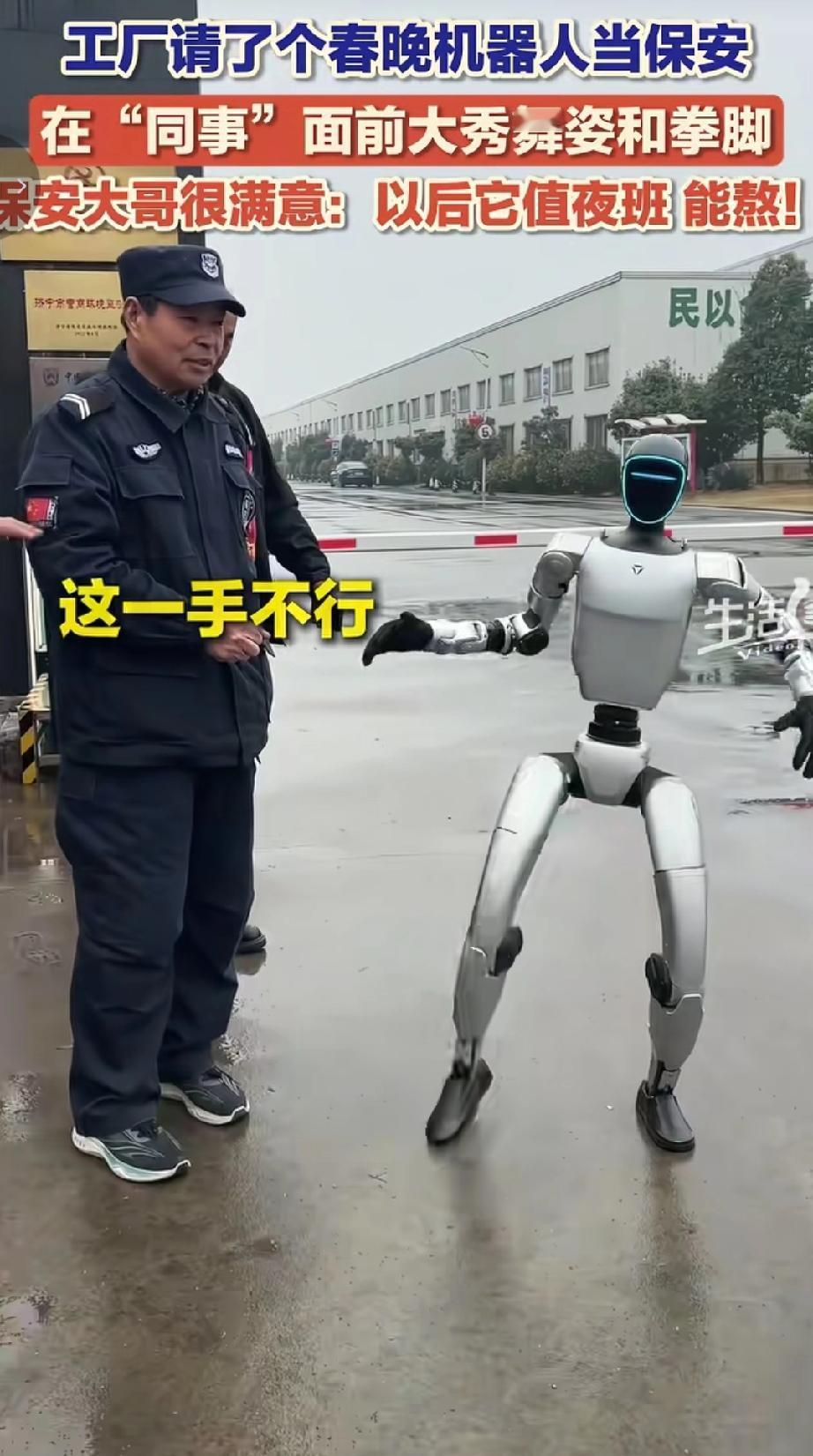 2月27日山东济宁当地一工厂请来曾登上2026山东省机器人春节晚会的机器人担任保安,上班第一天这台机器人就在工厂“同事”面前展示了武术动作,引得现场人员连连称赞,大家还调侃以后可以让它值夜班,能熬夜值守。(来源于@生活帮)