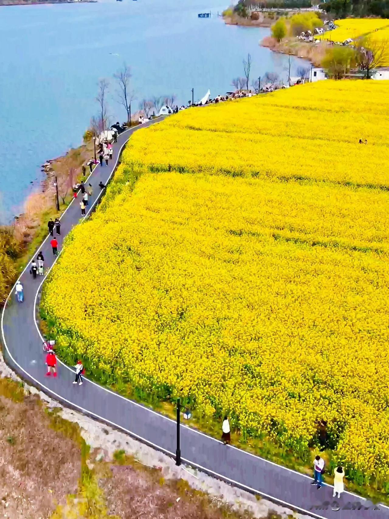 家人们,看油菜花真不用跑远!杭州富春江的花海三月就开好了,从市区自驾游不到1小时