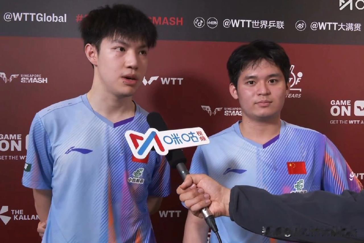 黄友政太可爱了,被问连得四分是怎么做到的,他萌萌的问第几局。 黄友政和林诗栋太专