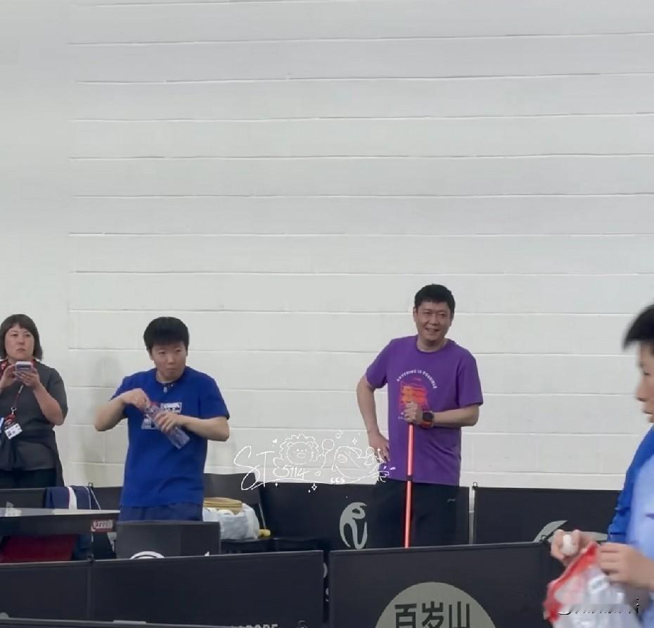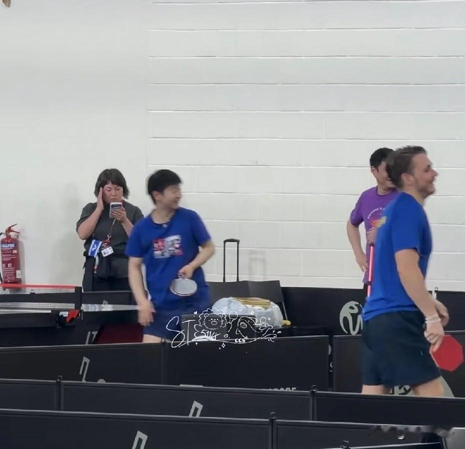 小莫在模仿莎莎热身动作,把莎莎和邱导都逗笑了。今天晚上第一场就是小莫的男单比赛,他也早早的来训练馆里训练了,第二场女单是莎莎对阵石洵瑶,莎莎她们也来了,莎莎热身结束后,就看到隔壁球桌的小莫在模仿莎莎热身动作,莎莎看着小莫模仿她,笑的很开心。 今晚的女单1/8决赛,是莎莎对阵石洵瑶,莎莎也能早点下班了。这次女单赛前训练,看到是莎莎和石洵瑶一起热身的,看来国乒女队如果内战,还是看对手是谁,有些是不一起合练的,各自备战。看到邱导在盯着她俩练球,队医也在旁边,闫禹橦也来练球了。不过很少看到大迪在训练场,下一轮女单1/4决赛,大迪要对阵温特,估计大迪会和佳佳一起练球吧,温特改了防弧打法后,确实成绩不错,打球很凶,也很有力量,大迪也要做好困难准备。 莎莎确实挺能说,看到有进去训练馆了球迷,拍到莎莎不练球的时候就在那跟大家聊几句,今天莎莎穿了蓝色训练服,打完比赛也可以早早的回去吃点饭了。中午的比赛中,蒯曼是2-3输给了早田希娜,早田希娜晋级女单八强,下一轮早田希娜将对阵莎莎和石洵瑶之间的胜者。