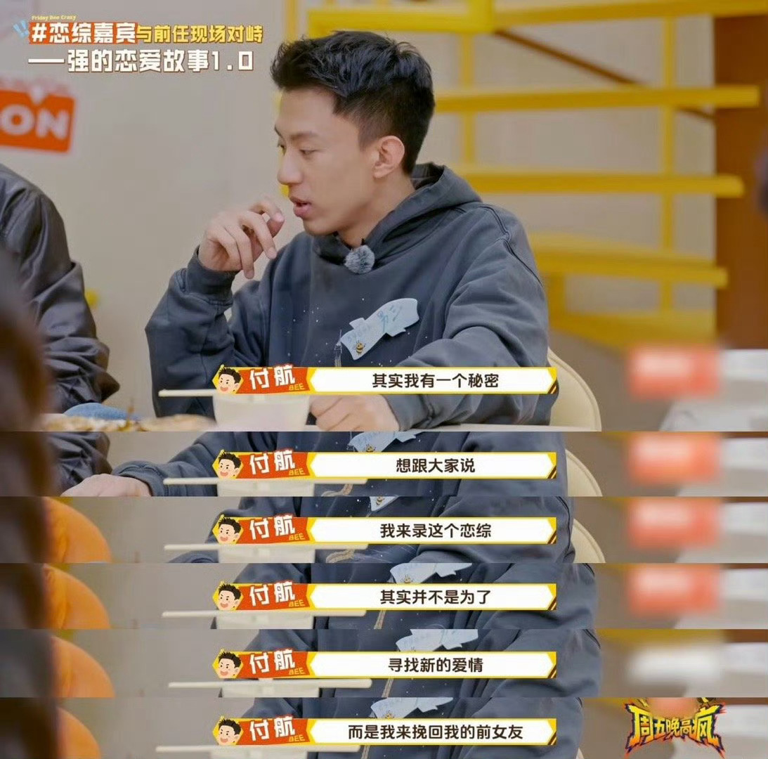 找到付航上恋综的原因了周五晚高疯谁能料到付航上恋综的理由这么好笑!他在节目里即兴飙戏,深情铺垫挽回前女友,校园回忆、雨中撑伞拉满氛围感,全员入戏。结果神反转:女生哭是因为草莓太甜!一本正经演苦情戏,结局甜到离谱,反差感拉满,综艺感天生满级,笑到停不下来。
