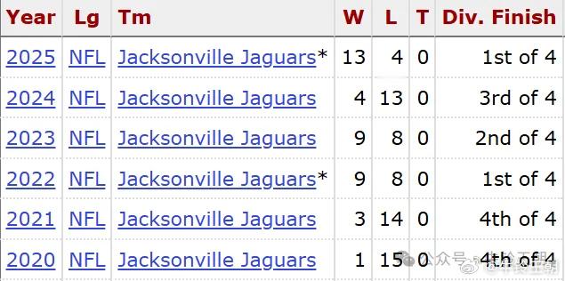 美洲虎则在拿到第二个状元的当赛季就将战绩从3胜提升到9胜,并重回季后赛,最近四年,三次胜率50%以上,两次季后赛经历。