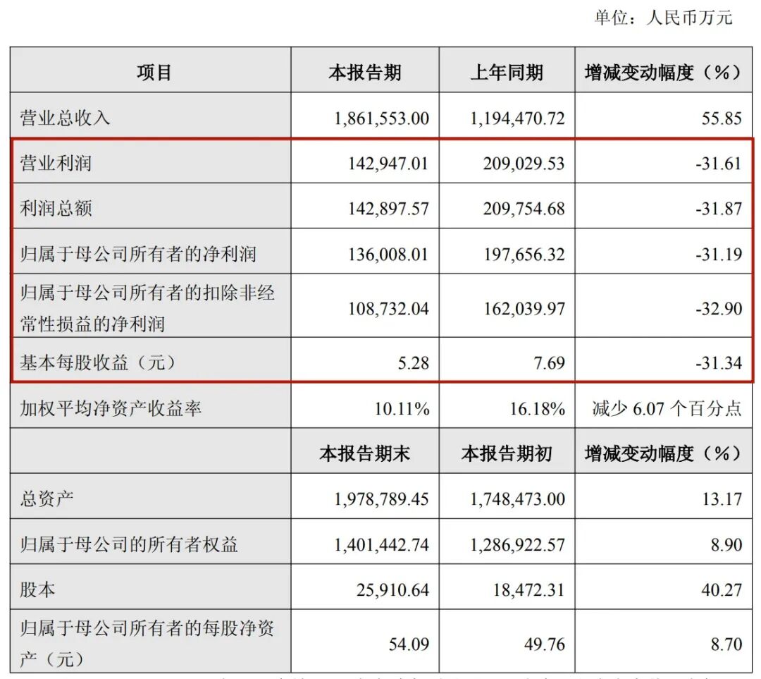 从整体财务盘面来看,公司资本规模保持稳步提升,2025年末总资产达197.88亿元,较期初增长13.17%,归属于母公司的所有者权益140.14亿元,同比增长8.90%;股本增至2.59亿股,增幅40.27%,主要系报告期内资本公积转增股本及股权激励限制性股票归属所致。但盈利效率有所回落,公司加权平均净资产收益率降至10.11%,较上年同期减少6.07个百分点,与利润下滑形成呼应。