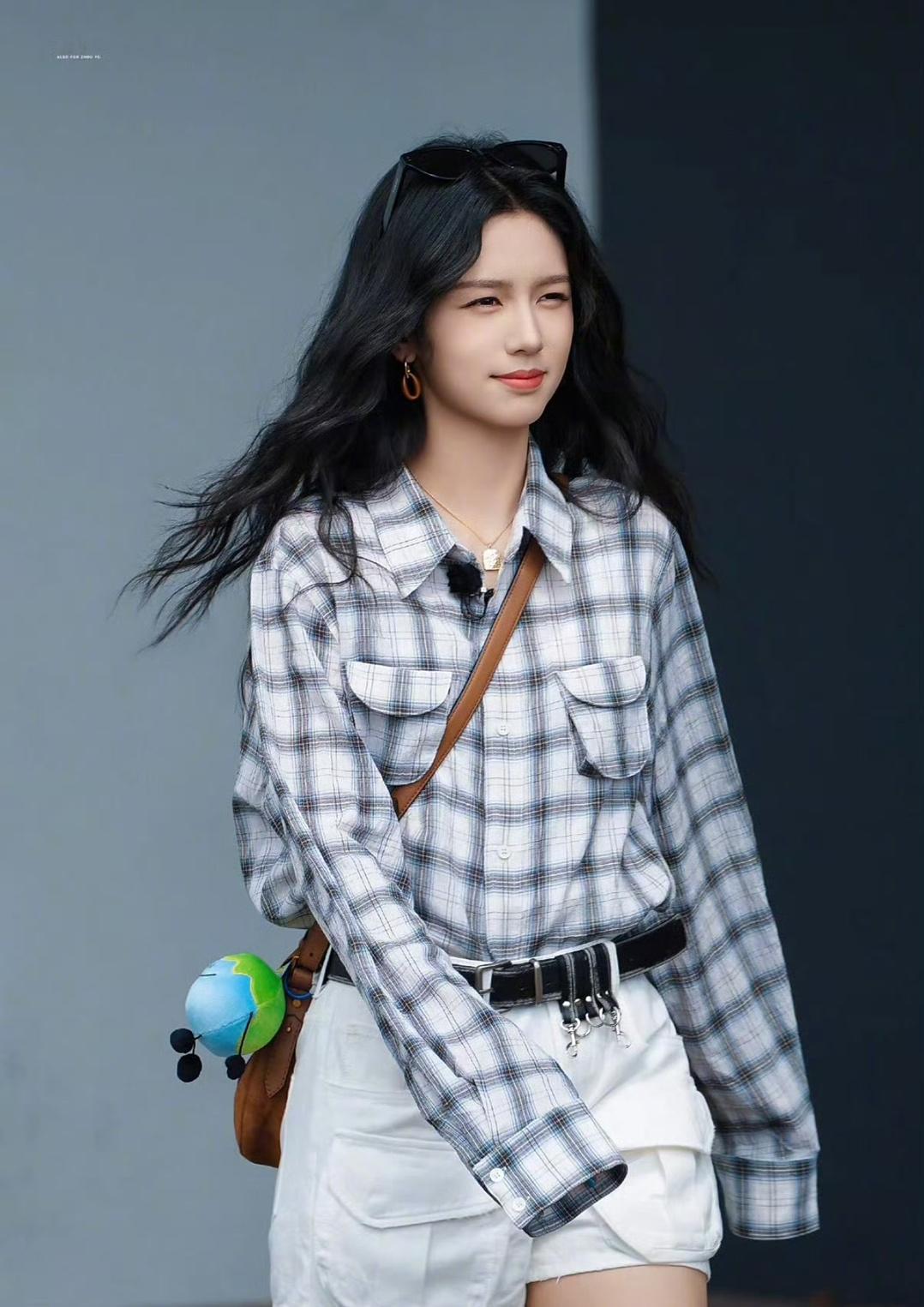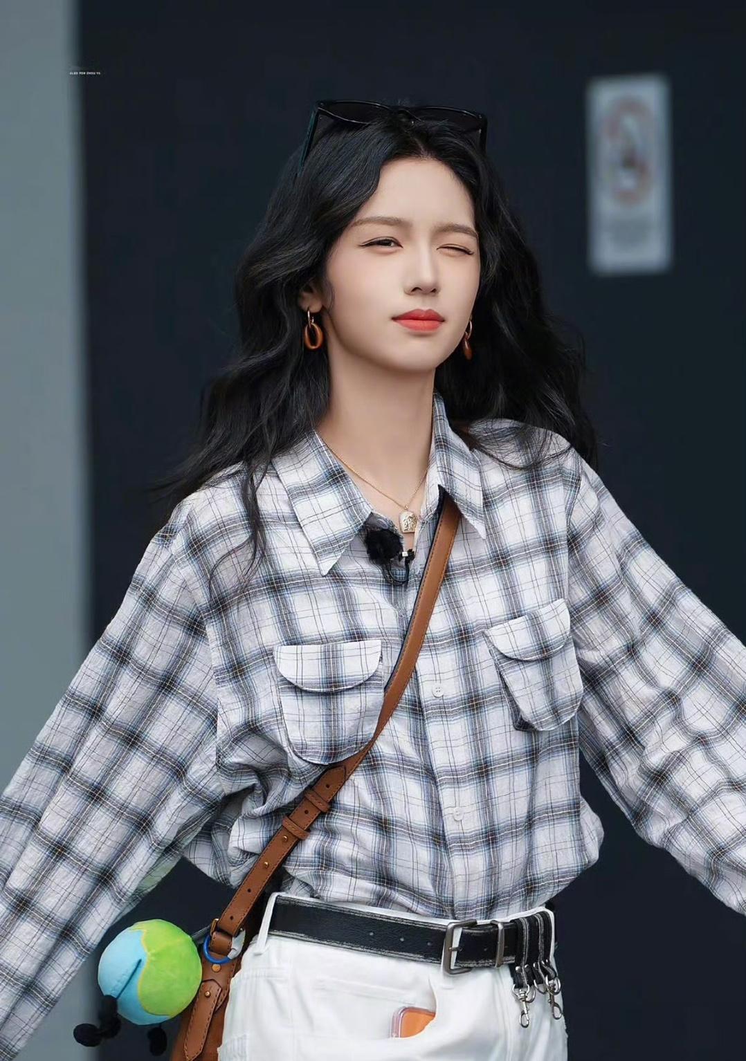 周也羊毛卷墨镜造型,终于等到我们也子的🌍路透,笑得这个明媚