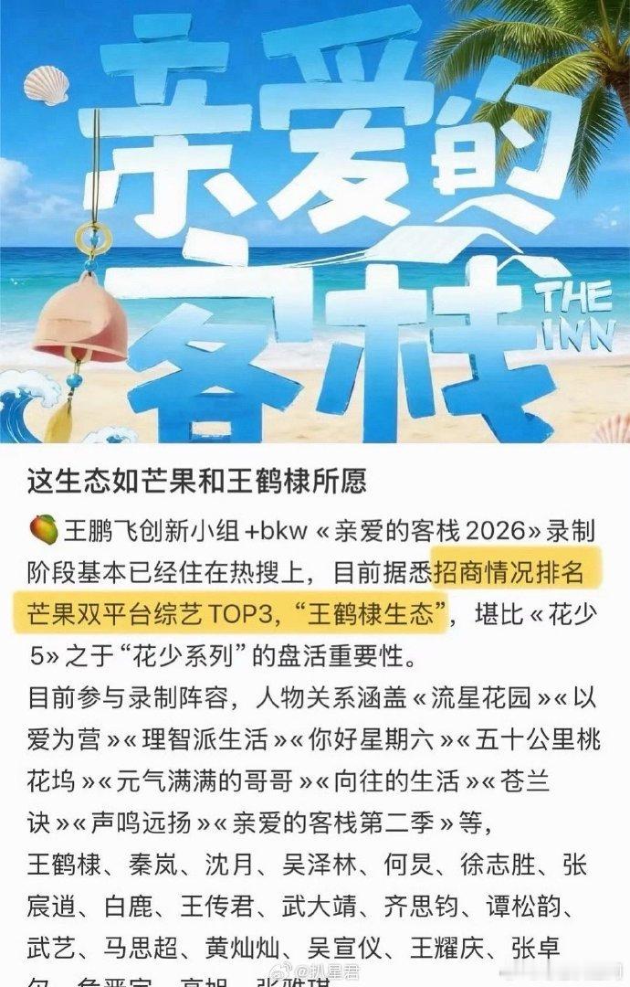 王鹤棣亲爱的客栈招商黄金档 + 多赞助 + 顶配手机,全是王鹤棣带来的!王鹤棣亲