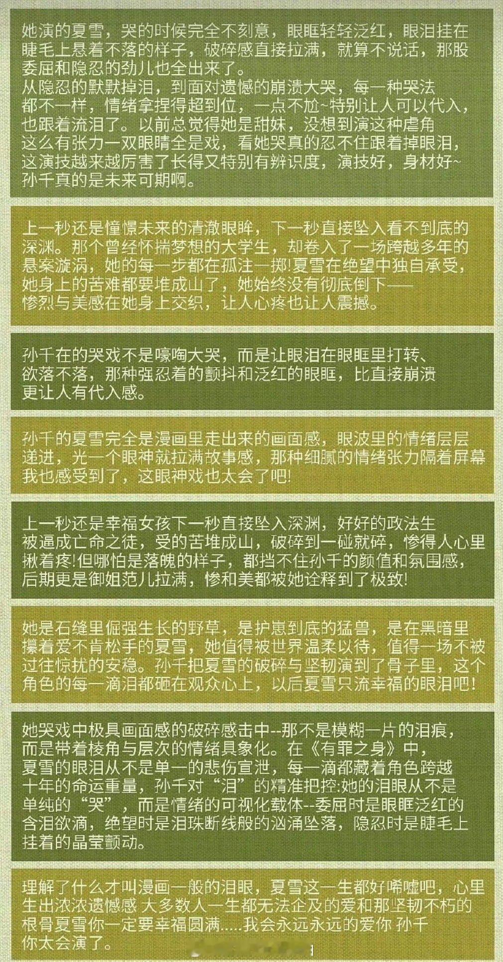 孙千2026有效播剧 有人说夏雪是本色,有人说费霓是本命。吵到最后发现,孙千只是把每个角色都活成了自己的一部分。剧火是因为演得真,人火是因为藏不住。有效播剧,不过如此。