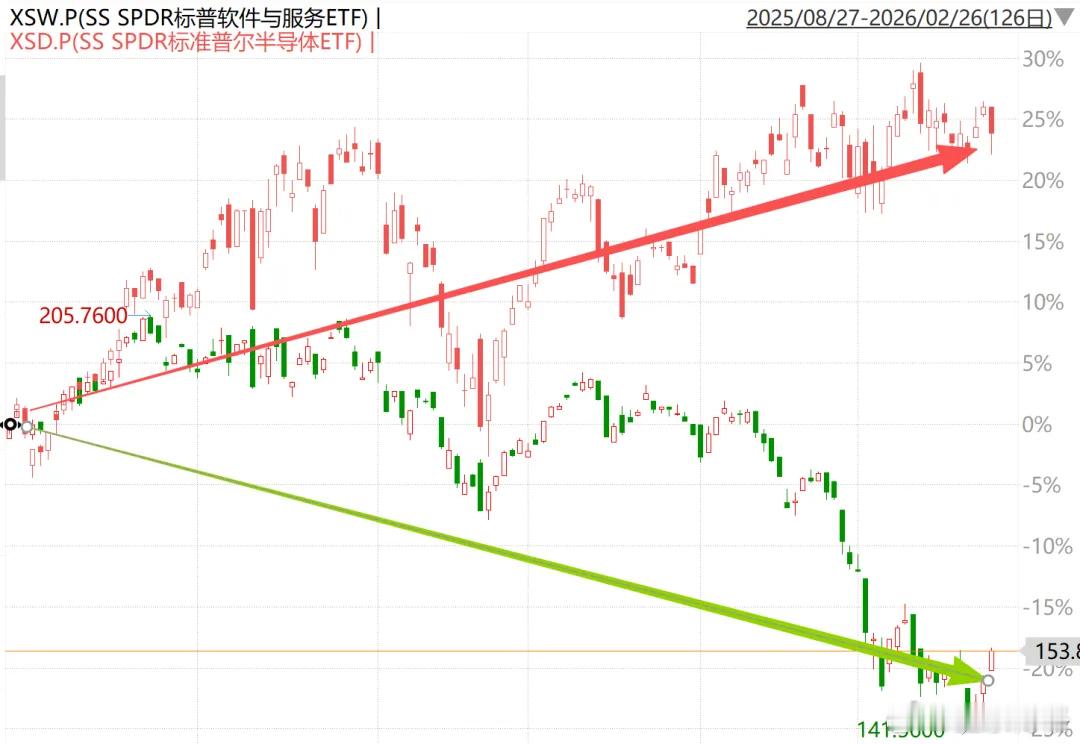 AI‑Resilient Basket 正在 “收割” 恒生科技最近几个月,恒生科技指数持续处于回调。作为重仓恒生科技的投资者,博格一直在琢磨这波回调背后的核心原因,直到看到一条关键新闻:高盛推出的AI‑Resilient Basket策略,或许正在“收割”恒生科技板块。这到底是怎么一回事?其实,这是华尔街最近半年非常流行的一套投资策略,由高盛正式命名为AI‑Resilient Basket(直接翻译是“AI抗冲击篮子”)。从本质来看,这套策略属于股票多空策略,核心逻辑的背后,是高盛对AI产业链上下游结构性分化的判断——AI上游领域持续受益于算力需求的爆发式增长,而下游领域则面临AI替代与市场竞争加剧的双重挤压,这种分化正是该策略盈利的核心。具体操作逻辑十分清晰,简单来说就是“做多上游、做空下游”:一方面,做多AI上游领域,重点布局那些难以被AI替代、且直接受益于AI算力扩张的板块,主要包括芯片产业链、数据中心基建、电力设施等资本密集型领域——这类领域资产复制成本高,淘汰风险低,正成为市场资金追捧的重点方向;另一方面,做空AI下游领域,主要针对那些容易被AI替代的赛道,比如标准化软件、SaaS服务、通用应用,以及部分平台经济标的——这类轻资产领域依赖人力或数字资本,受AI颠覆的风险较高,也是近期市场调整的重灾区。我们可以通过一个具体例子,更直观地理解这套策略的操作方式和盈利能力:假设我们搭建一个该策略的简化组合,一边做多标普半导体ETF(XSD,聚焦AI上游芯片领域),一边做空标普软件ETF(XSW,聚焦AI下游软件领域)。从近期行情数据来看,这套组合的盈利表现十分亮眼:近半年来,做多XSD与做空XSW的收益叠加,合计收益率接近50%,这对海外对冲基金极具诱惑力。目前,海外对冲基金不仅将这套策略广泛应用于美国市场,导致美股软件股大幅下挫,还将其直接复制到港股市场——而恒生科技指数中,包含大量标准化软件、平台经济类标的,恰好属于该策略的做空范围,这也成为恒生科技近期持续大跌的重要诱因之一。不过需要注意的是,任何投资策略都不可能长期有效,AI‑Resilient Basket也不例外。近期市场已经出现明显的反转信号:芯片龙头英伟达(NVDA)股价开始出现显著调整,2月26日单日下跌5.46%,结束了此前的强势走势;与之对应,此前一直被“按在地上摩擦”的标普软件ETF(XSW),近期逐步企稳回升,这也意味着这套策略的盈利空间正在逐步收窄,市场或迎来新一轮的结构切换。恒生科技