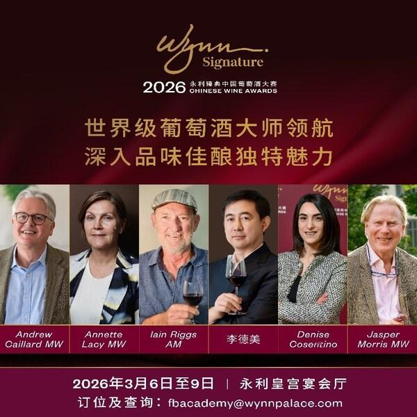 澳门2026年2月27日--永利渡假村旗下精致体验品牌"WynnSignature永利臻典"倾力打造的"2026永利臻典——中国葡萄酒大赛"盛势归来,赛事评审周将于3月6至10日在永利皇宫隆重举行。为期五天的活动不仅涵盖权威评审环节,更带来一系列精彩纷呈的葡萄酒大师班及美食美酒盛宴,展现中国精品葡萄酒的耀世风采。