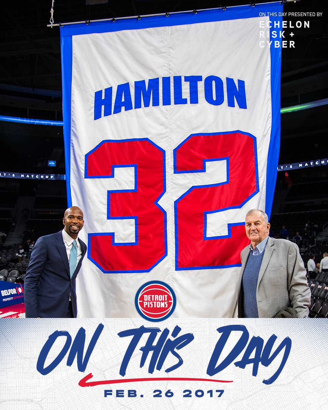 虎扑02月27日讯活塞官方更新X,晒出一张前NBA球员理查德-汉密尔顿的退役仪式老照片,并配文: