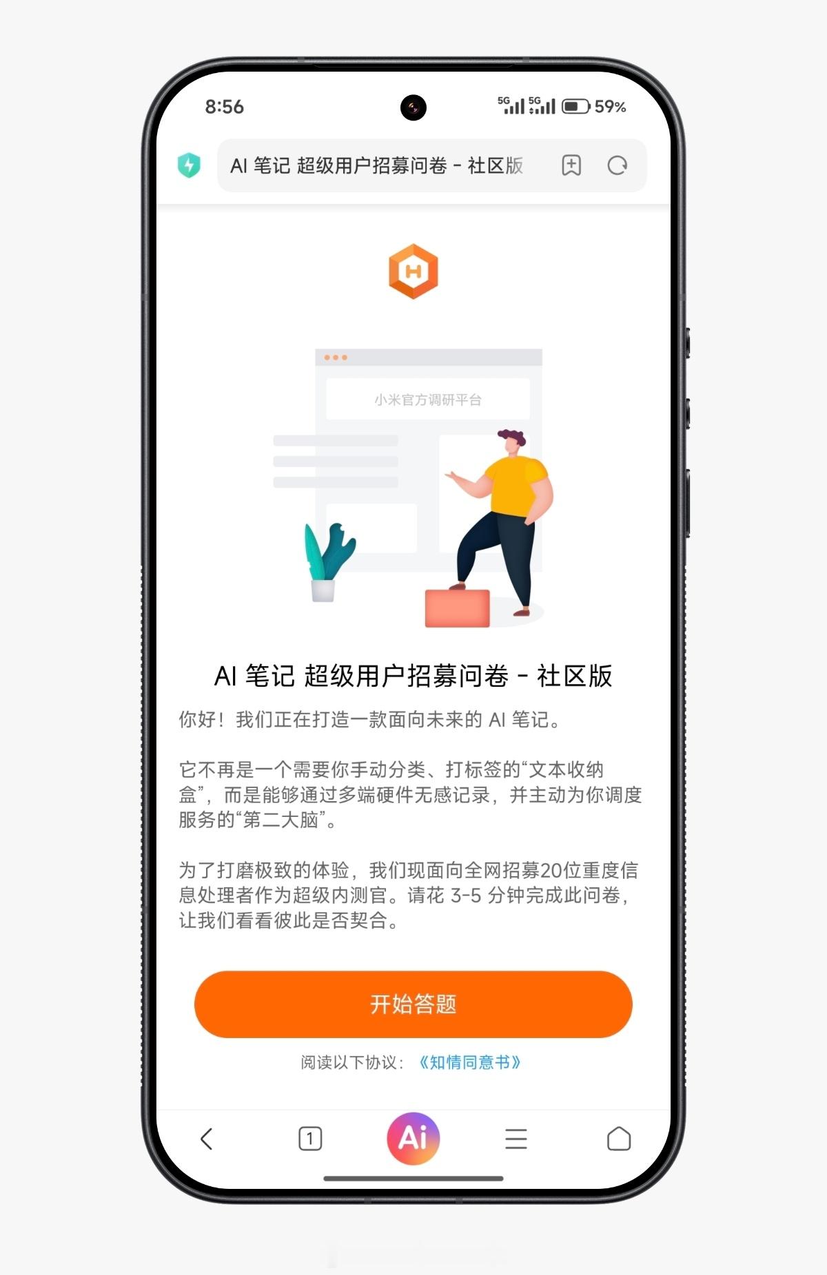 小米澎湃OS3 刚刚申请了“AI笔记”内测,毕竟我是滴答清单老用户了。看了一下问卷内容,估计信息录入跟小米可穿戴有关联?全网招募20位重度信息处理者作为超级内测官?好久没见过这么少规模的内测了,但试无妨?*申请内测的问卷链接我放在下方评论区,有兴趣的小伙伴不妨申请试试