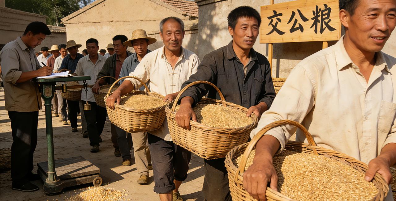 你看到过农民交公粮的场景吗我小的时候就亲自看过父母交公粮,把好的粮食送到粮食所完成公粮任务,还有猪肉,自家一年养一头猪除了上交公社食品站后,自家只能乘一个猪头和两块猪板油,还有猪杂等大慨80%是国家的,你们那里也是这样吗?