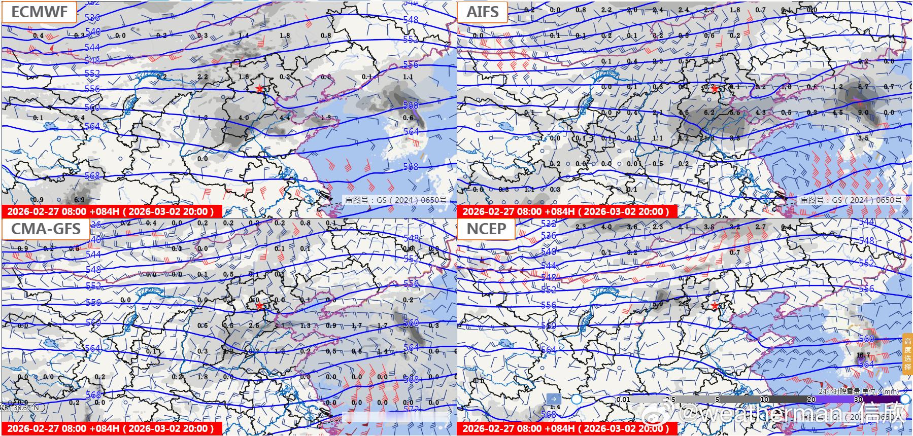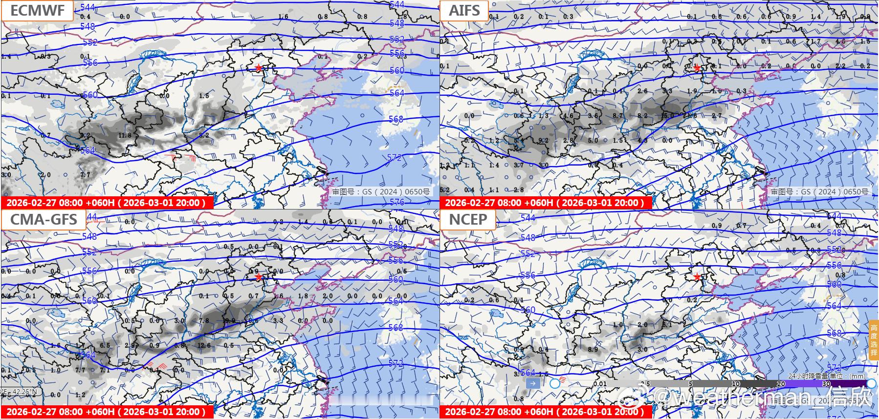 图7-9为不同数值预报对于未来3天,北方部分地区的降雪量预报。对比图4-6的降水预报,2月28日-3月1日,降水区北段,甘肃、陕西、山西、河南、河北一带,雨雪相态相对复杂,如果气温低一些,降雪占比高,降雪量就可能较大。目前看28日晚-1日,山西河南河北交界一带的雪,可能相对强。北京天津处于降雪区边缘,下不下,随缘。