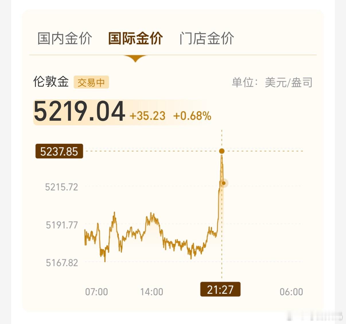 国际形势动荡,金价开始拉升,国际金价已突破5200 黄金