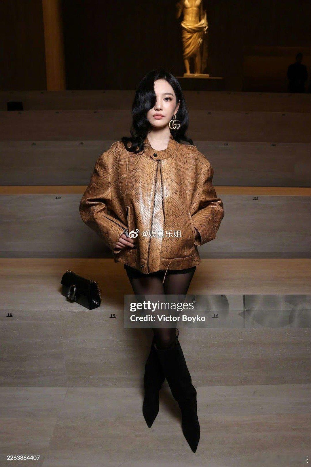 宁艺卓蛇纹皮衣时装周米兰时装周