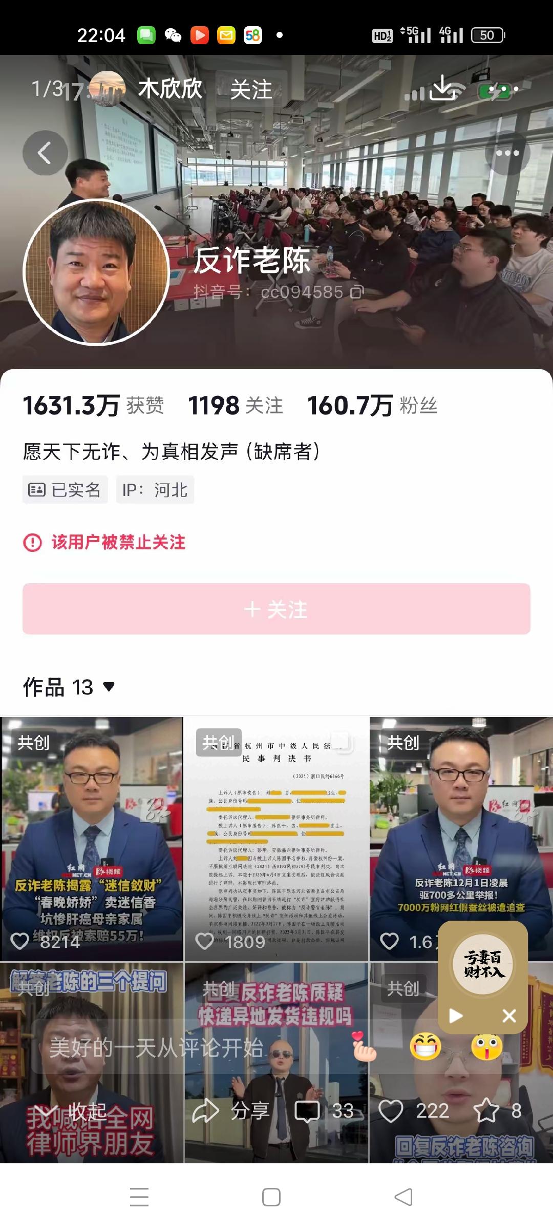 老陈这下要黄了, 本来想打着正义的旗号, 收拢一波关注, 结果却整得自己账号被封