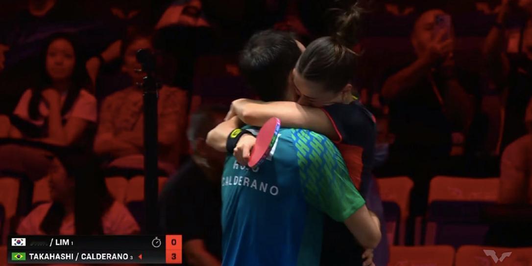 雨果高桥布鲁娜混双夺冠 失之东隅收之桑榆!雨果·卡尔德拉诺单打输了,搭档女友高桥·布鲁娜拿下混双冠军。WTT新加坡大满贯混双决赛,巴西组合雨果·卡尔德拉诺/高桥·布鲁娜以11-7、11-6、13-11,大比分3-0战胜韩国组合林钟勋/申裕斌,成为国乒组合之外,第一对获得WTT大满贯混双冠军的组合。赛后,两人的拥抱好甜!