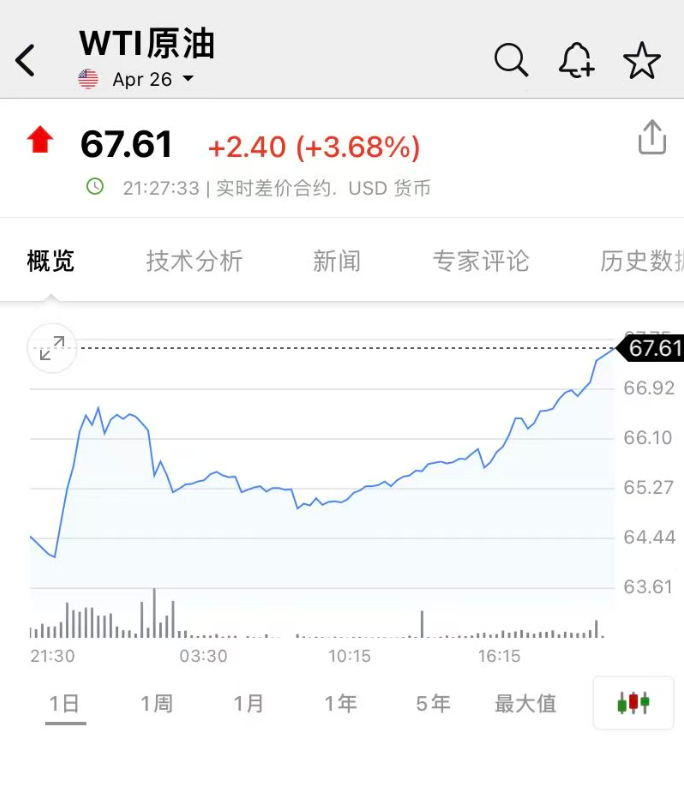 【#黄金白银国际油价齐涨#】2月27日晚,国际油价、黄金、白银齐涨。截至发稿,WTI原油日内涨幅达3.68%,报67.61美元/桶;布伦特原油日内涨幅达3.56%,报73.36美元/桶。与此同时,金价银价直线拉升。截至发稿,现货黄金涨超1%,报5238美元/盎司;现货白银大涨5%,现报92.6美元/盎司。另外,上期所沪银主力合约大涨7%,报23942元/千克。#黄金白银原油齐涨#