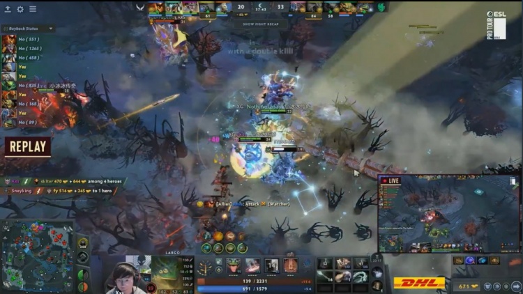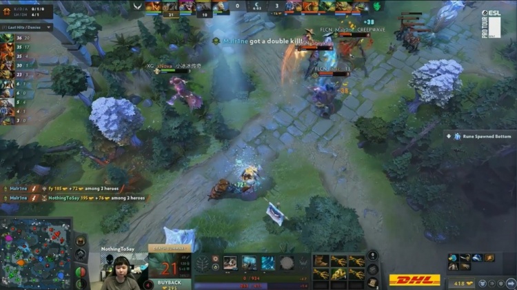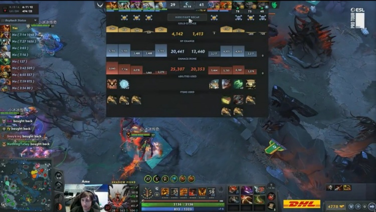 天辉方XG:Ame影魔、NothingToSay牛头、Xxs伐木机、fy海民、xNova百戏大王