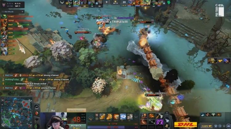 [5:20]Cr1t朗戈来中,森哥海民也来到中路,xNOVA与Sneyking随后来中,中路3v3,森哥先被Malr1ne毒龙击杀,随后毒龙再点掉NTS拿到双杀,哥哥影魔不来,NTS买活来中又被击杀,Malr1ne拿到三杀,猎鹰打出2换4。
