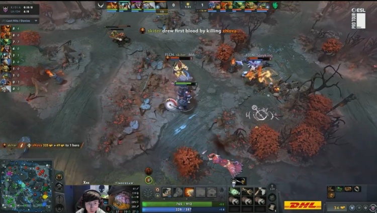 [13:54]上路团战,xNova没能走掉被猎鹰三人逮捕,森哥同时偷掉经验符,猎鹰众人撤退,经济领先3k。