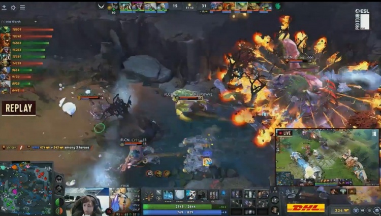 [15:08]上路继续开战,xNova换掉Sneyking双头龙,随后XG上路推进,森哥与NTS双人被杀,猎鹰回头吃掉一代肉山,不朽之守护给到skiter龙骑。