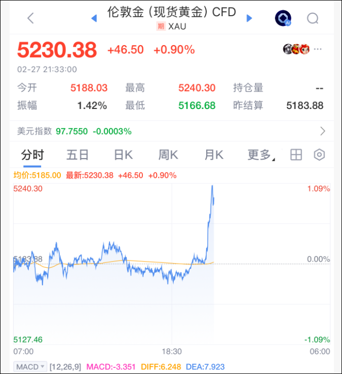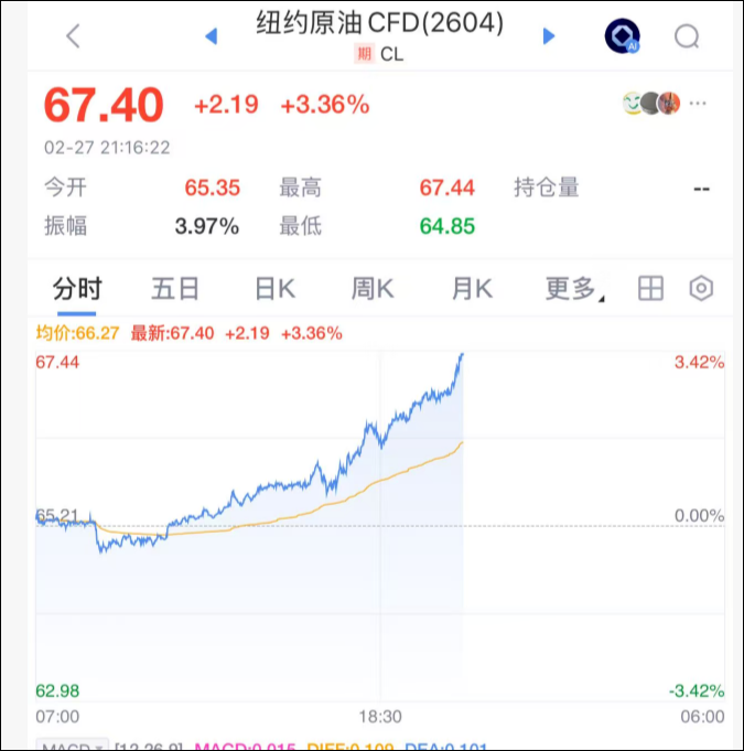 原油市场暴涨超过3%。