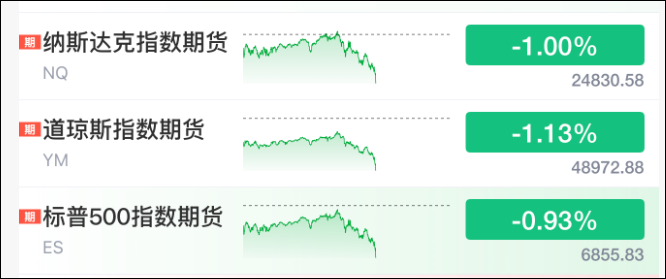 与此同时,美股盘前三大指数跳水。