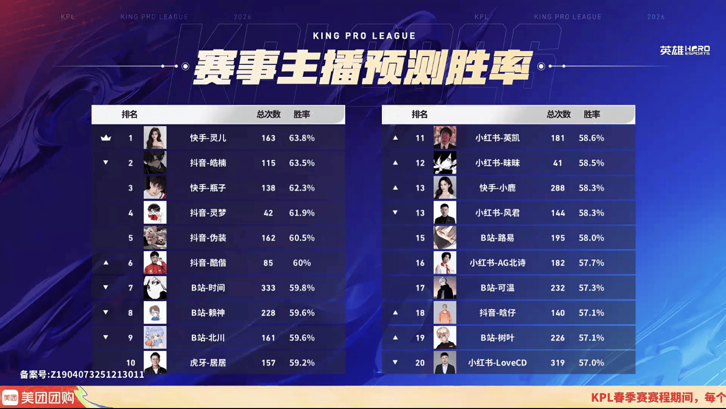快手-灵儿胜率63.8%,位于排行榜第一。
