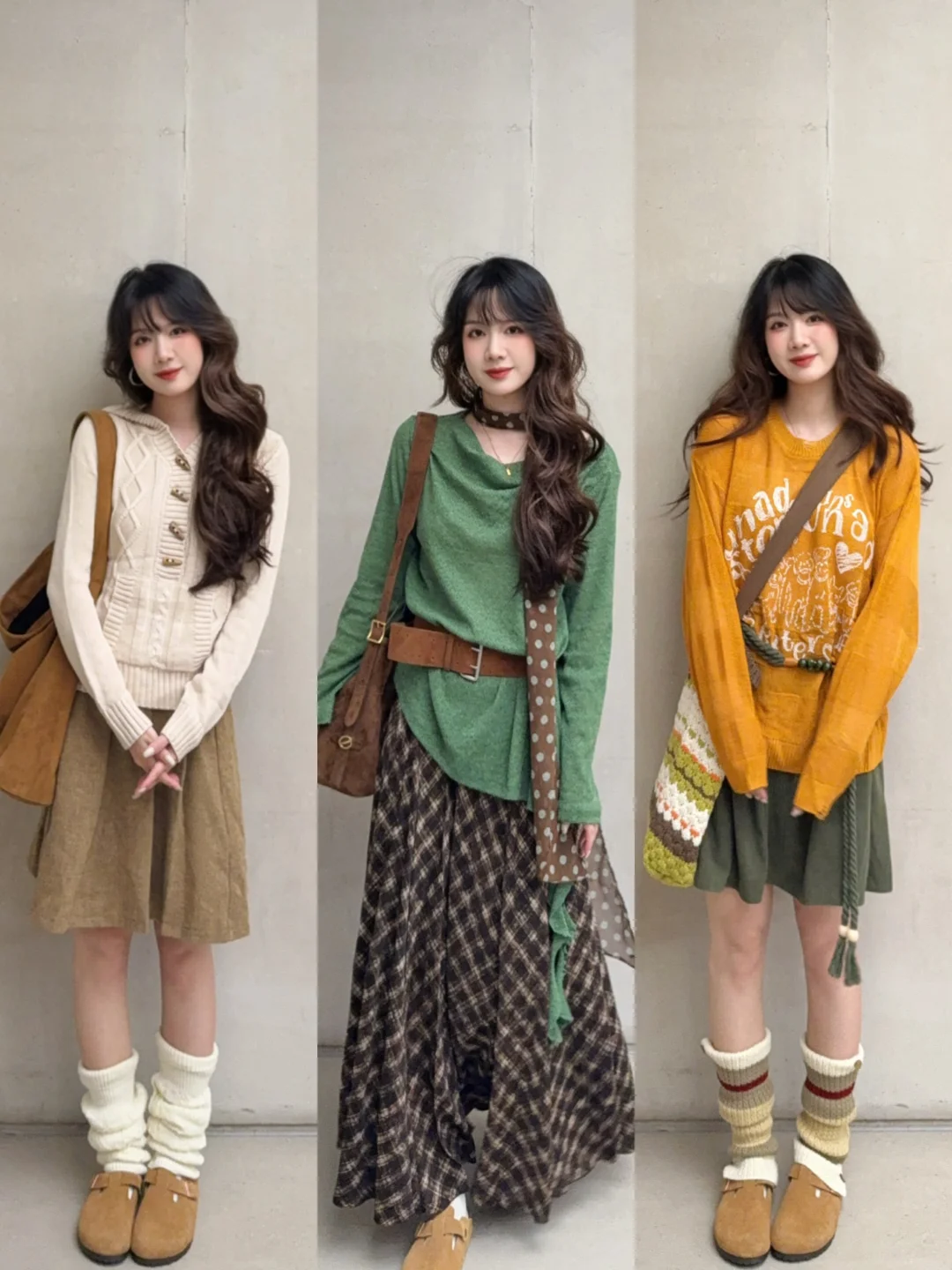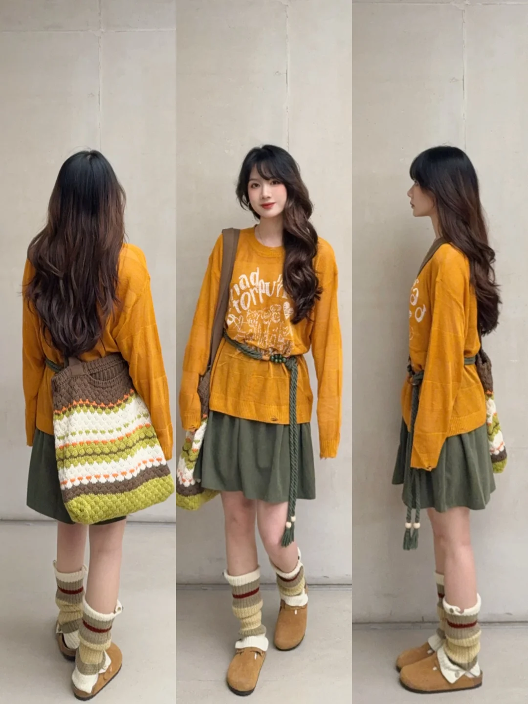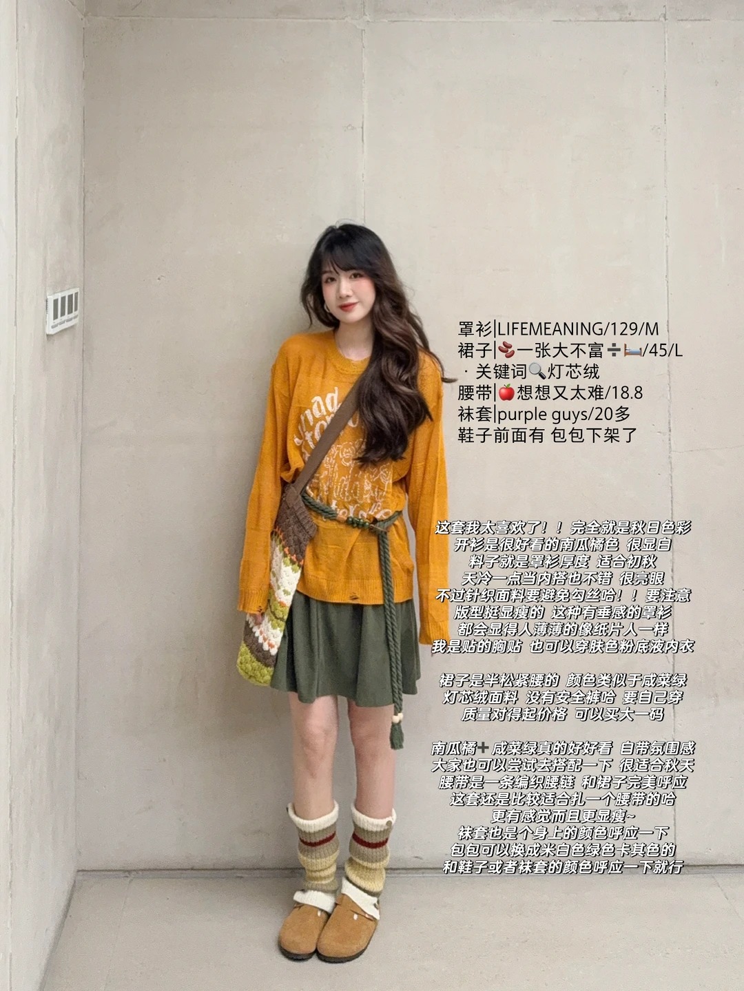 💭南瓜橘➕咸菜绿/牛油果绿:麦田色系 丰收的喜悦 显白又亮眼 很适合秋景 !