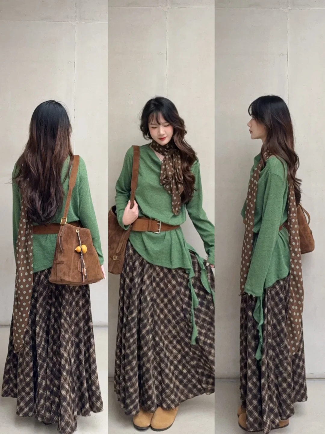 💭绿➕棕搭配:大树色系 森系氛围感拉满 很复古又显白 基本上每年秋冬都会狠狠爱上