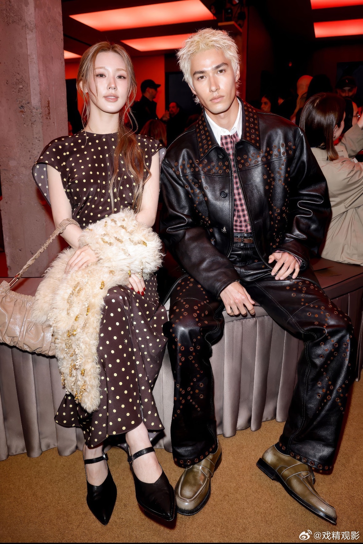 米卡赵美延同框 米卡是懂怎么让人记住的,Marni秀场上别人都端着走,他带着夏威夷度假回来的肤色和白发造型往那一站,青青草原的画风瞬间就有了,沸羊羊本羊认证。