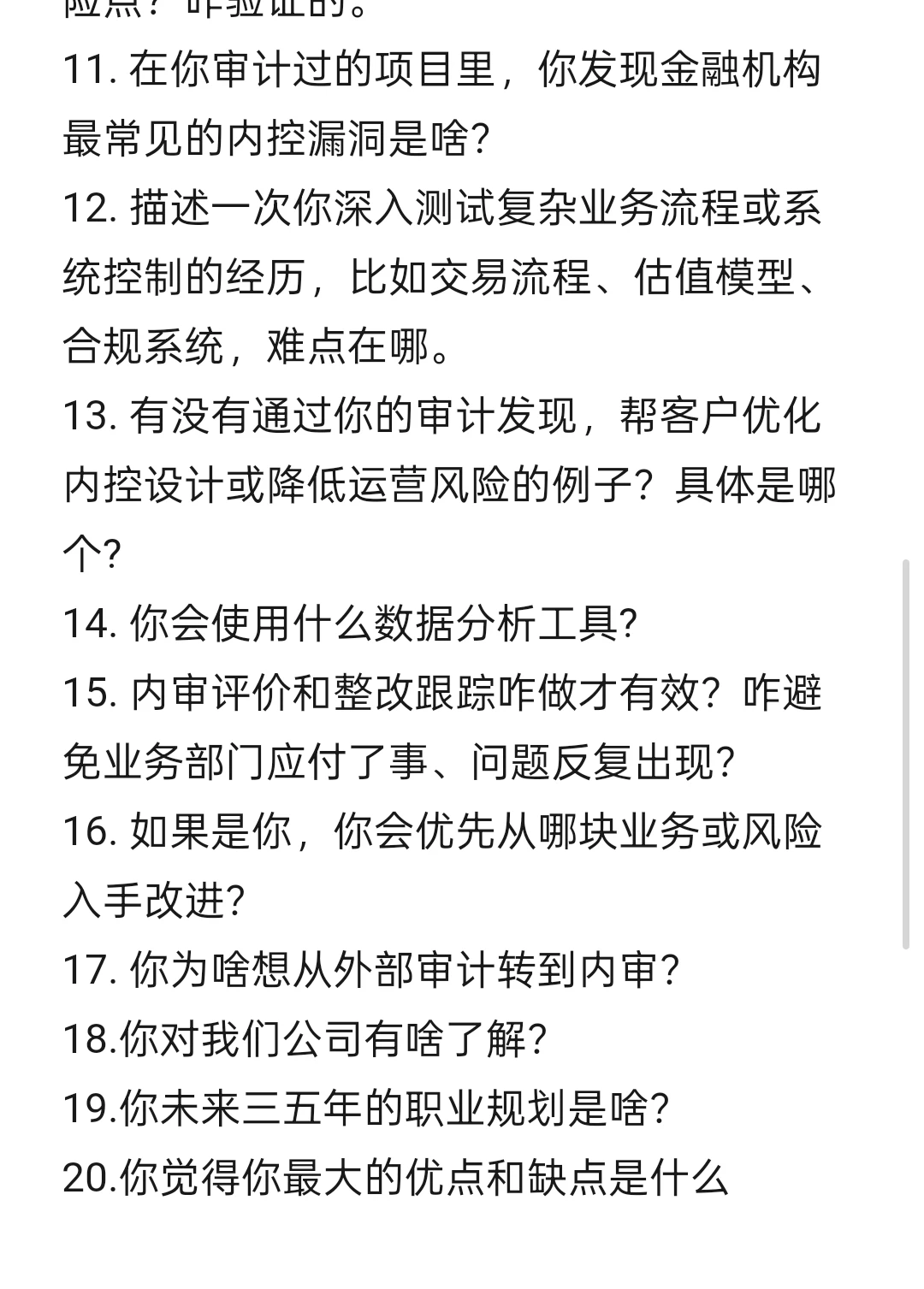 17. 你为啥想从外部审计转到内审?