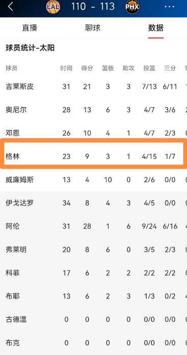 太阳超级后卫杰伦-格林真是烂泥扶不上墙!虽然今天太阳在主场以113:110力克湖人,但是杰伦-格林的表现真是让人不忍直视。 今天NBA常规赛,太阳在主场打赢了湖人,这场比赛打得很胶着,最后时刻奥尼尔命中三分绝杀,才帮太阳险胜,湖人则遭遇了三连败。 不过球队赢了,杰伦-格林的表现却一点都不让人满意,甚至可以说是拖了球队后腿。 杰伦-格林是太阳的后卫,这场比赛他进入了首发阵容,上场时间不算少。 可他在场上一直找不到状态,投篮总是投不进,不管是两分球还是三分球,出手之后大多偏出,偶尔投进一个也显得很勉强。 除了投篮不准,他在传球上也没什么表现,很难给队友创造好的进攻机会,反而还出现了好几次失误,让球队白白浪费进攻机会。 这场比赛,太阳的布克和狄龙都因伤没上场,本来是杰伦-格林证明自己的好机会,球队也给了他足够的出手权,可他却没把握住。 和他形成鲜明对比的是队里的其他球员,阿伦和吉莱斯皮都打得很好,尤其是吉莱斯皮在末节拿到很多分,稳住了局势,奥尼尔的绝杀更是直接帮球队锁定胜局。 其实杰伦-格林近期的状态一直不好,不只是这一场。最近四场比赛,他的投篮手感都很差,命中率一直上不去。 这场比赛到了末节关键阶段,教练也没再让他多上场,最后绝杀的关键时刻,他就算在场上,也没起到任何作用。 赛后教练提到,杰伦-格林还在适应新球队、新体系,需要一点时间,但这样持续的低迷,实在让人难以相信他是2021年的榜眼秀。 太阳能赢下这场比赛,靠的是团队配合和其他球员的发力,和杰伦-格林的关系不大。 他在场的时候,球队的进攻节奏反而会变慢,防守端也没什么贡献,有时候还会因为他的失误让湖人找到反击机会。 现在太阳正处在冲击季后赛的关键阶段,需要每个球员都发挥作用,而杰伦-格林这样的表现,显然没能承担起自己的责任,说他烂泥扶不上墙,确实一点都不夸张。 以上都是个人观点,对此您有什么不同的看法,可以在评论区留言讨论!!!