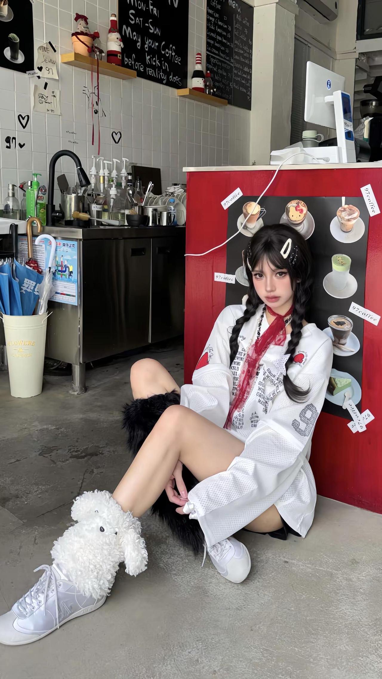这套是甜贵少女风,核心是棕毛短外套+格纹裙的组合:毛绒外套自带贵气温暖感,格纹裙