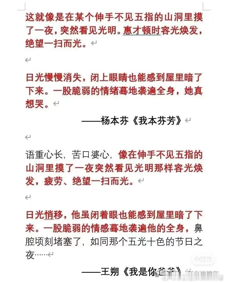 王朔写“像在伸手不见五指的山洞里摸了一夜突然看见光明”,她就在《我本芬芳》里写“就像是在某个伸手不见五指的山洞里摸了一夜,突然看见光明”。图片