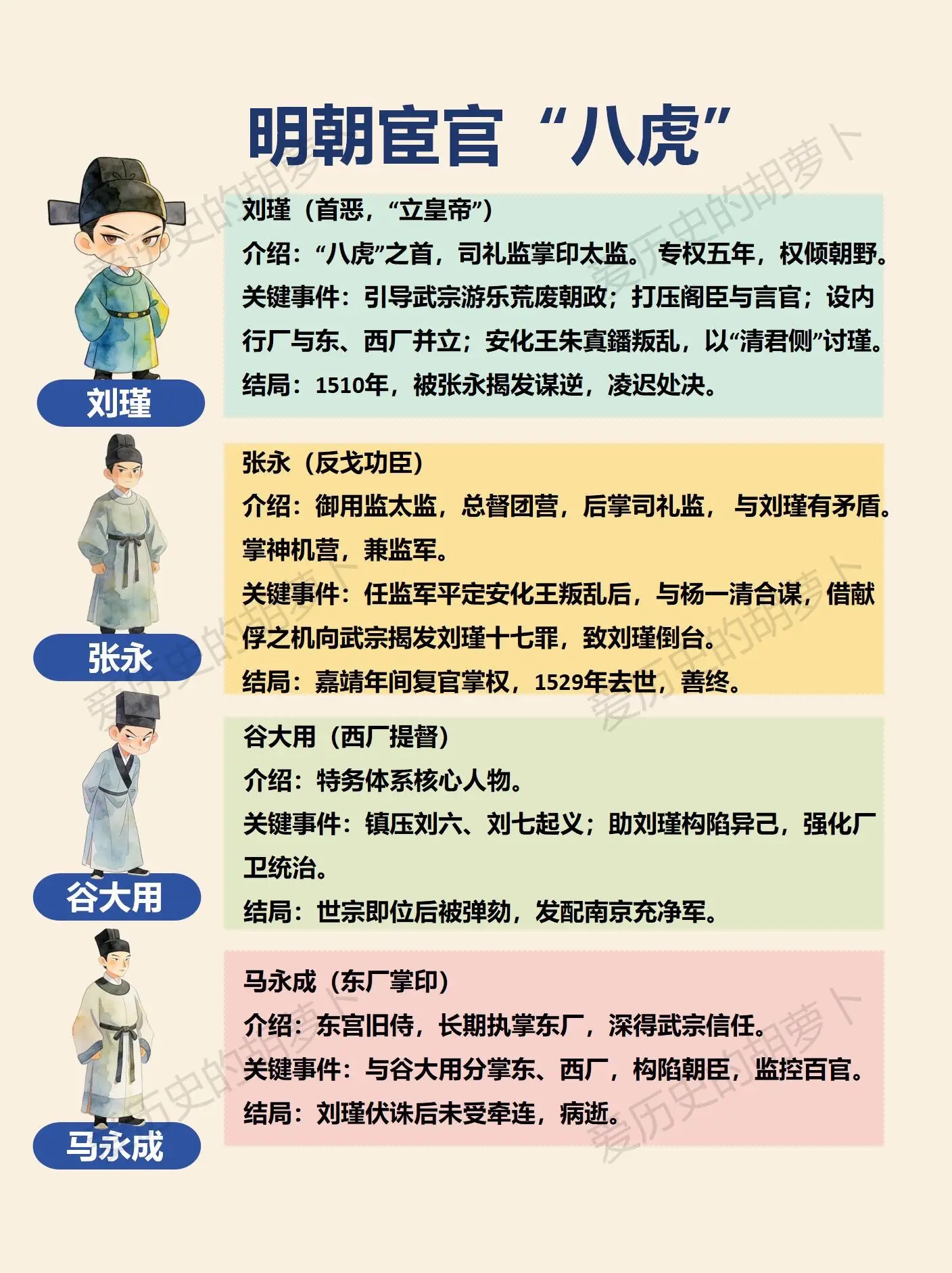 明朝“八虎”里,真有“好人”吗?张永算不算洗白?🤔 明朝最野“男团”:陪皇帝疯,把朝堂当作游乐场!😱 谁能想到,大明最能折腾的“顶流男团”,居然是陪正德皇帝长大的八个太监?👀 他们就是权倾朝野的宦官【八虎】🐯,开局就是太子专属玩伴,手握司礼监、东厂、西厂实权,简直爽文剧本!