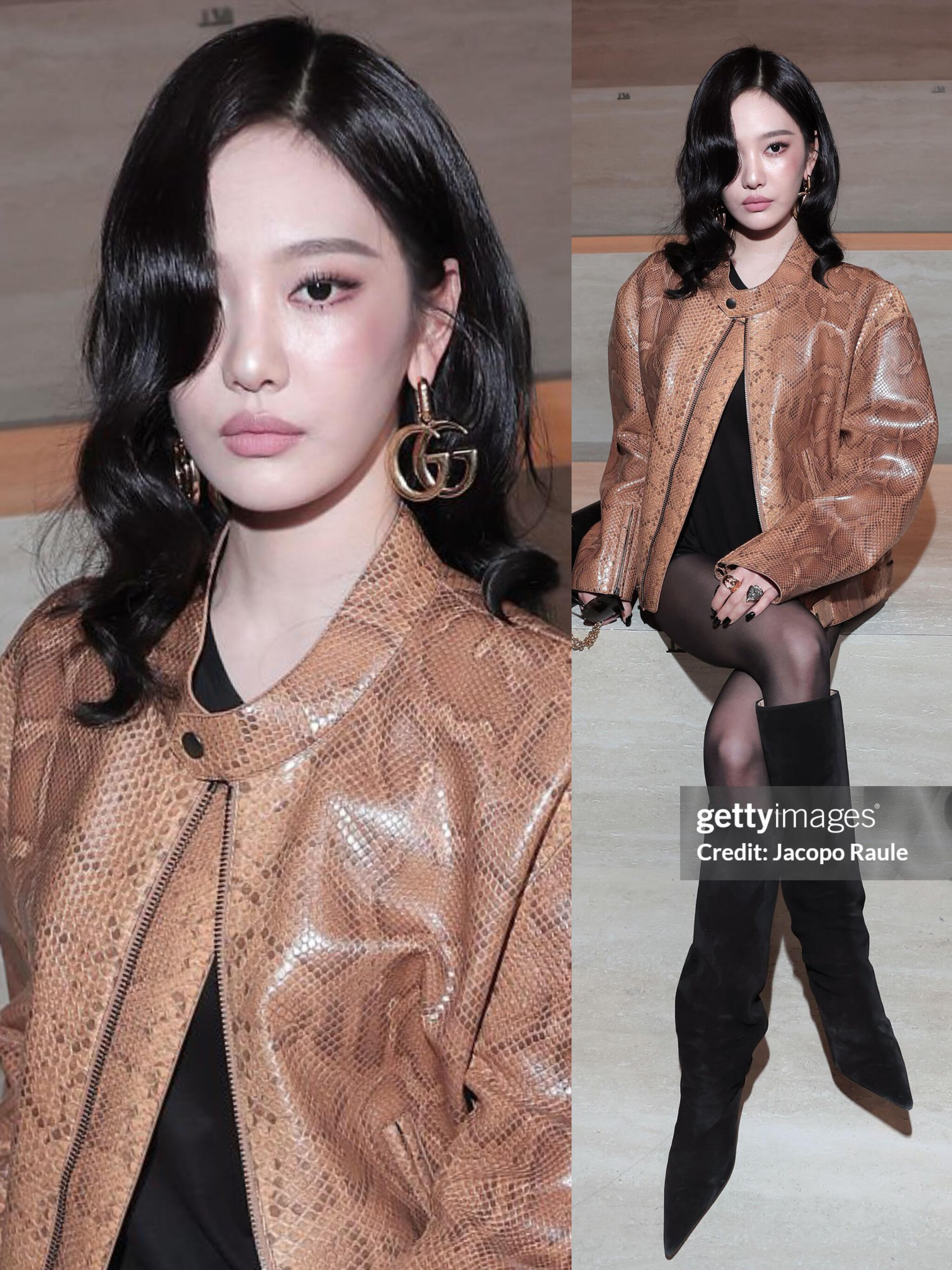 宁艺卓今日出席 Gucci 2026秋冬大秀,身穿刚刚发布的超季秀款亮相,G社依