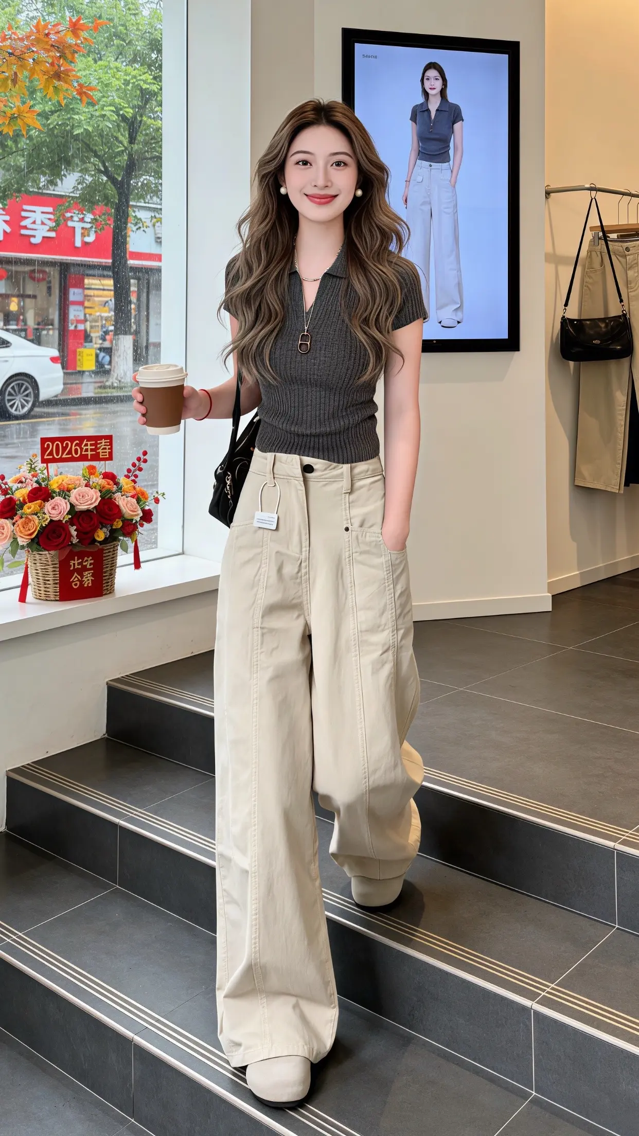 林心如的中年穿搭太会了!灰色开衫配白色阔腿裤,简约大气,高级感直接拉满~