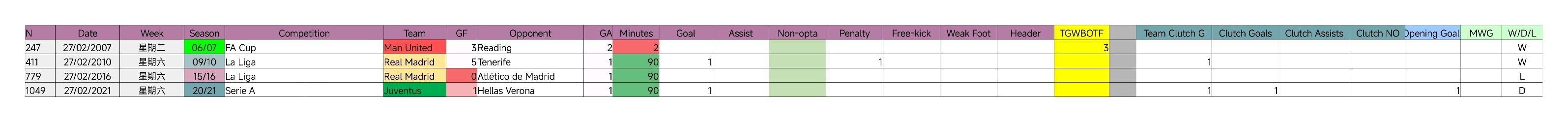 C罗和c罗一起siu到最后历史上的c罗 🚨C罗职业生涯在2月27日数据统计:4场2胜1平1负,进2球,1个关键球,1个首开记录,1个点球(详见P4)