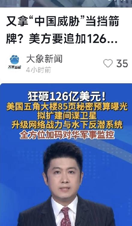 突发!美国砸860亿围堵中国,太空水下网络三面开战 彭博社2月26日爆出猛料,五角大楼拿出126亿美元额外预算,折合人民币860亿元,专门盯着中国军事演习、潜艇和卫星进行全域监控。这笔钱不在常规军费里,是实打实的对华专项围堵资金。 5.28亿美元用来扩建沉默巴克卫星群,这套太空天眼24小时锁定中国空间站与卫星,反卫星武器的微小动作都能实时捕捉。1.43亿美元升级东海、南海海底声呐网,水下耳朵精准捕捉潜艇噪音,形成全天候反潜预警网。10亿美元砸进网络战,研发瘫痪军事指挥系统的病毒和逻辑炸弹,组建专职黑客战队。另有10亿美元扩大X-37B空天飞机规模,这款神秘飞行器长期执行秘密任务,具备卫星干扰和太空侦察能力。 美国自称防御支出,数据藏不住野心。2026年美国常规军费高达8930亿美元,中国军力建设立足自卫,舰艇总数稳步提升,卫星数量逼近1000颗,水下与太空能力快速成长。专家指出,美国焦虑来自中国军力均衡发展,试图用技术监控维持霸权优势。 这场对抗正在亚太升级,水下猫鼠游戏更激烈,太空监控反制循环形成,网络空间风险持续走高。美国一味搞遏制,真的能压住中国发展吗,这样的军备竞赛最后谁会吃亏。 美砸860亿围堵中国