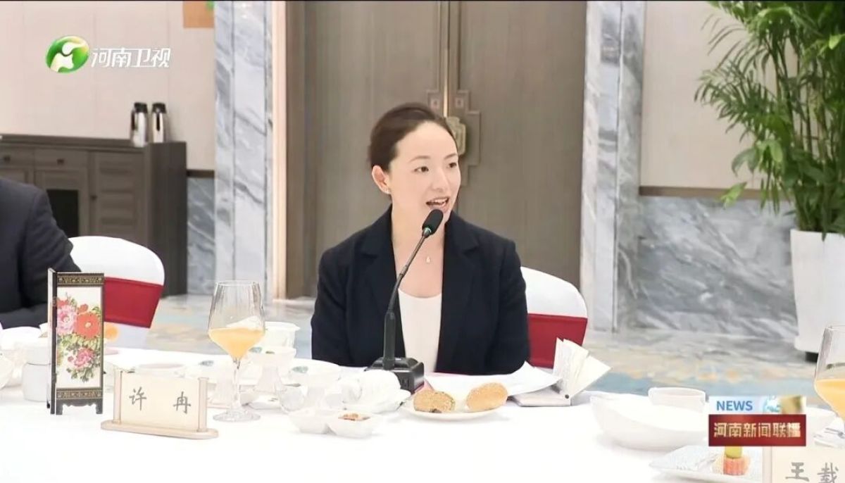 许冉在餐叙时发言(图片来自河南卫视截图)