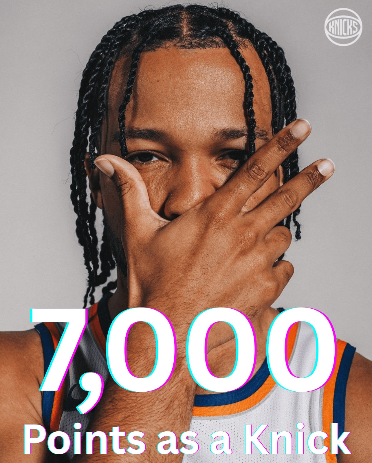 尼克斯官方分享动态:布伦森尼克斯生涯得分突破7000分大关。