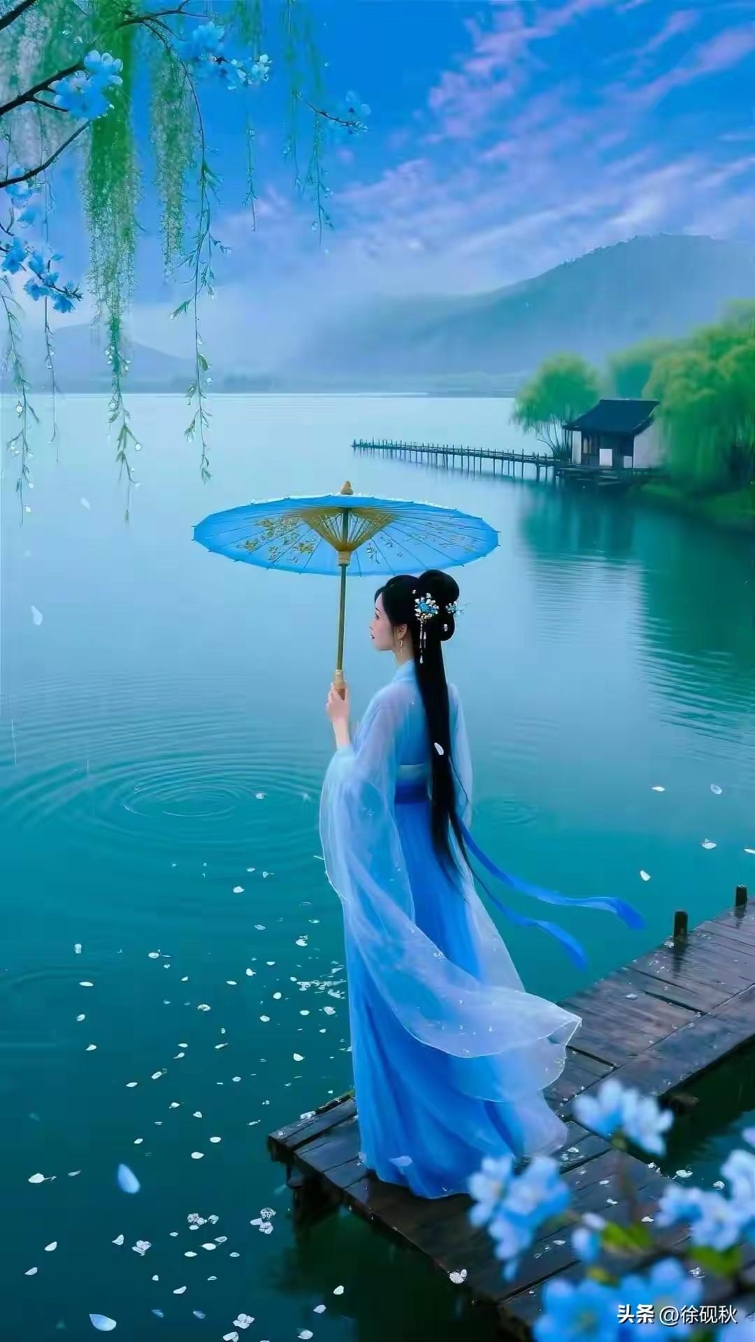 江南水乡,海市蜃楼。 如若瑶台,恰似仙境。 一袭旗袍,贴身裁剪。 一把雨伞,一把折扇。 流动风景,浅音低唱。