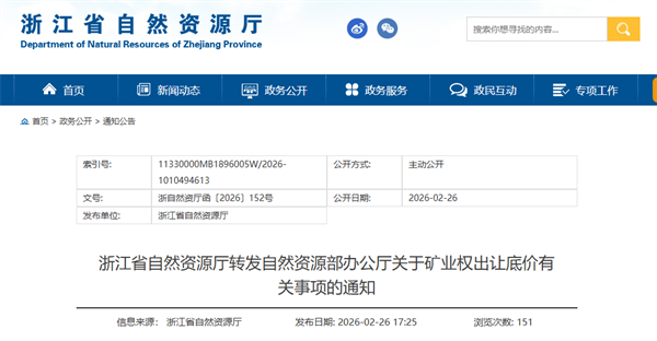 2月26日,浙江省自然资源厅转发自然资源部办公厅关于矿业权出让底价有关事项的通知《详见:事关砂石等矿业权出让底价自然资源部明确有关事项》。新规明确,浙江省应结合实际出台落地要求,针对砂石等矿业权出让底价的确定、管控、调整等环节作出规范。
