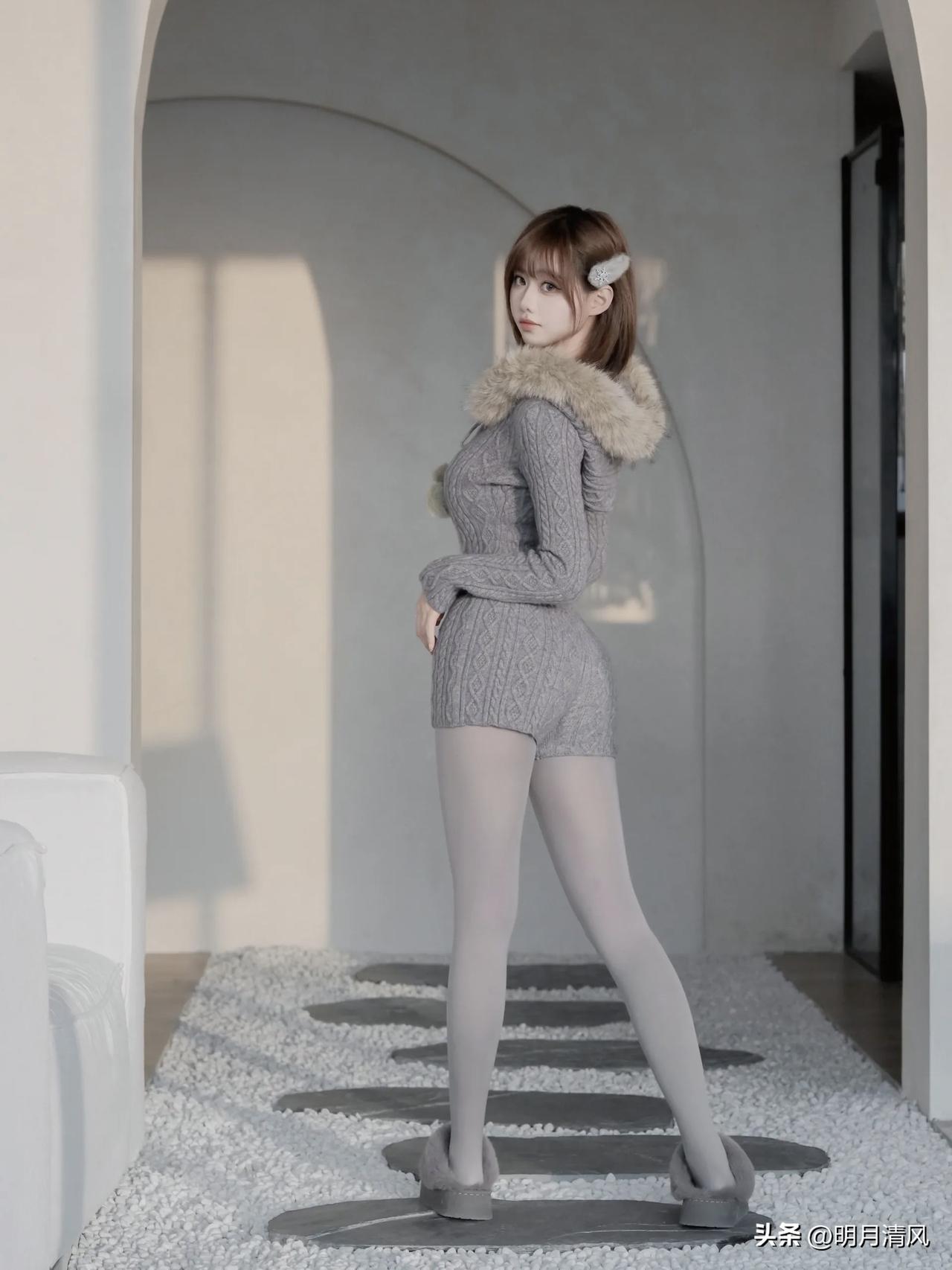 下午四点的阳光从窗户斜进来,朋友穿着灰色针织连体衣在家里随便拍了几张。 有个动作我俩都觉得挺辣——单膝跪在沙发边缘,肩膀微微耸起来,手搭在毛领边上。这个姿势的好处是:锁骨线条特别明显,身体曲线收紧,灰色丝袜在光线下显得很柔和。眼神可以冷一点,不用笑,反而更有氛围感。 全程手机拍的,就是抓住日落前那一小时的光。你们在家有夕阳的时候也可以试试这个动作,很简单但出片率很高。 新年生活图鉴灰色丝袜 时尚穿搭