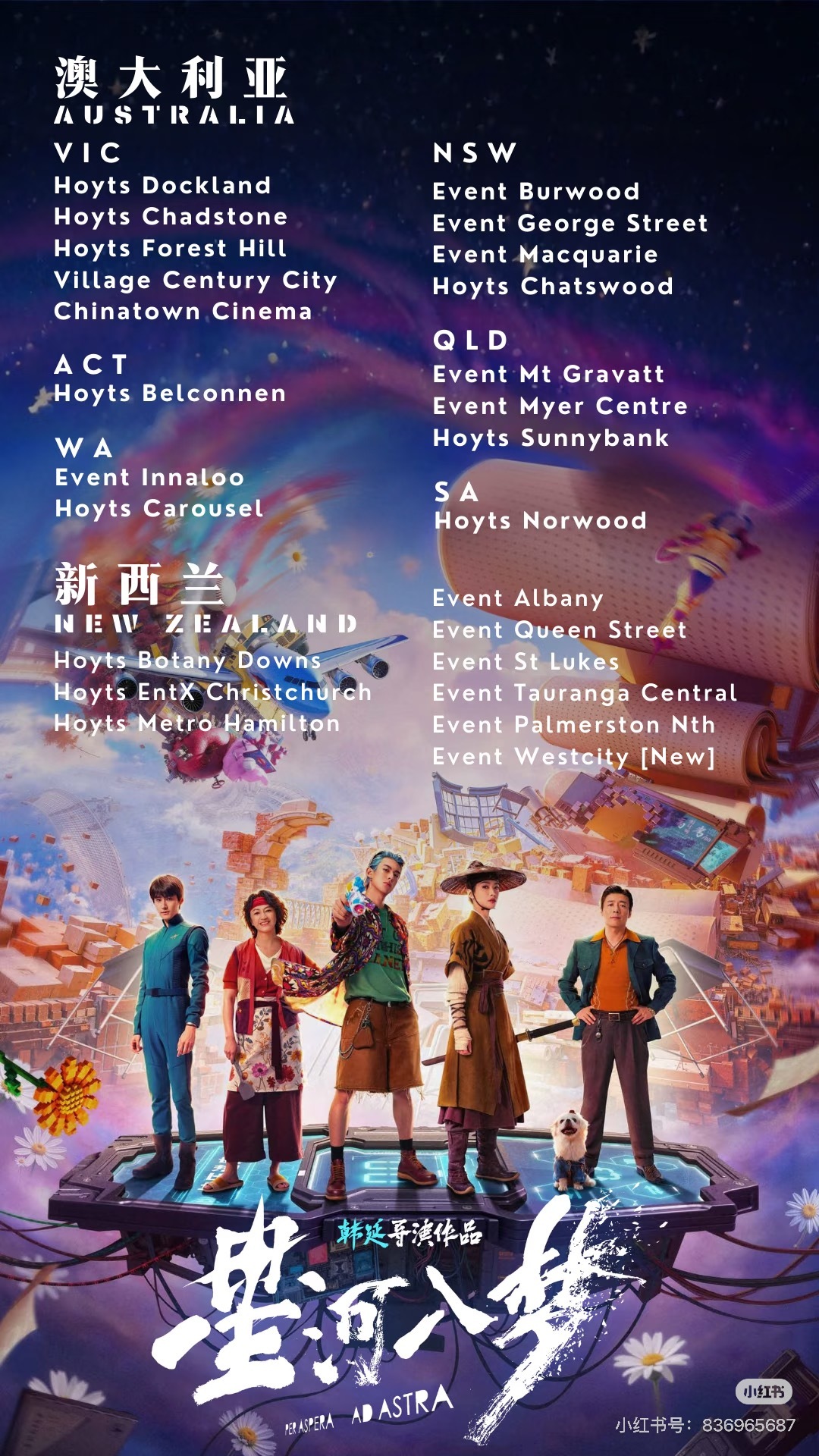 【电影星河入梦澳大利亚新西兰排片 】傅若清担任总监制,韩延执导,钱宁黄、韩延、高璐、刘达林、徐忱、马佩斯编剧,王鹤棣、宋茜领衔主演,祖峰、罗海琼主演,汪铎特别出演的111分钟科幻冒险电影《电影星河入梦 /Per Aspera Ad Astra》澳大利亚、新西兰排片公布,于03月05日公映。