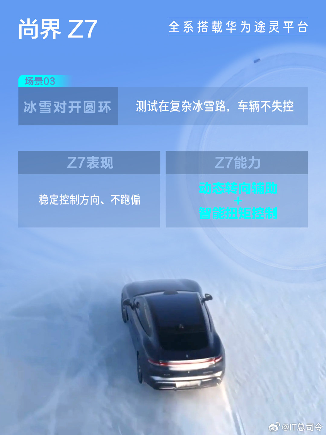尚界Z7冰雪测试刚才尚界Z7发的两个冬测视频大家看了吗?是真的帅呀,特别是过弯的时候,那低趴的姿态真是绝了,并且得益于尚界Z7全系搭载华为途灵平台,尚界Z7冬测全程不偏移,不打滑,日常生活中我们所遇到的复杂路况基本上都能胜任!又有颜值又有操控性,感觉尚界Z7上市肯定会大热。