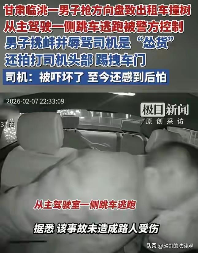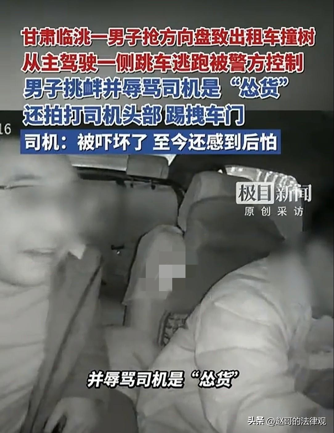 不可原谅!甘肃定西,出租车司机接到一男乘客,对方没话找话,说他打牌上万一局,并质问司机能打几局,司机没理他,男乘客就骂司机是“怂货”。司机斥责他:你管我玩几局,你要坐车就坐,不坐你下去!乘客拍打司机的头,司机没吭声,乘客又威胁他:你再说一句,我揍死你。随后,男乘客踢拽车门,突然控制司机右手,抢夺方向盘,出租车撞到树上停下,司机打开车门查看,男乘客趁机翻过主驾车门逃跑…… 晚上10点半左右,张阳的出租车接到一男乘客。 乘客就坐在副驾座,一上车就不太对劲,说话不太利落。 但他一个开出租车的,没资格挑客人。 只能暗暗盼着这段路程早点结束,把乘客安全送到目的地。 不料,车子开出没多远,乘客毫无来由的说:“我打牌一局上万元,你开出租车的,能打几局?” 张阳没吭声,类似这种话,他听过太多回了,无非一些醉话,认真你就输了。 可对方不依不饶,骂他:你真是个怂货! 张阳也血气方刚,他被激怒:“你管我玩几局,” 张阳忍不住回了一句:“你要坐车就坐,不坐你下去!” 话音刚落,那男的抬手就是一巴掌,拍在他脑袋上。 张阳的眼镜歪了,他咬咬牙,扶正眼镜,盯着前面的路,没吭声。 开了两年多出租车,他知道跟乘客动手的下场,是投诉、罚款、停运,倒霉的只会是自己。 “你再说一句,揍死你,信吗?” 对方在旁边叫嚣,抬脚踹了几下车门。 张阳握着方向盘的手攥得紧紧的,他想着再忍几分钟,乘客就下车了。 可下一秒钟,那男的突然扑了过来,一把抓住他的右手,整个人扑压到他身上。 张阳根本来不及反应,方向盘猛地一转,车子失控了。 只听到“砰”的一声巨响,他眼前一黑,脑子里一片空白。 等回过神来,车子已经撞停了,一棵树斜斜地卡在车头前面。 那个乘客的趴在他身上,脸上有血,嘴里还在骂骂咧咧的。 张阳大脑空白了几秒钟,才想起来推开车门下去查看,车头撞烂,保险杠都掉下来了。 他手抖得厉害,掏出手机准备报警。 就在这时候,那名乘客突然从副驾驶那边翻过来,从驾驶位一侧跳下车就跑。 张阳眼睁睁看着那人消失在夜色里,腿软得站都站不住。 之后他发现,副驾驶那侧的车门撞变形了,打不开,那人才翻过驾驶座跳的车。 民警调取了车上的监控。 视频清清楚楚地录下了全过程,对方怎么骂人、怎么打人、怎么扑过来抢方向盘、车子怎么撞上树。 办案的民警看了都直皱眉:这可不是交通事故,这是刑事案件! 男乘客被抓,脸上还带着伤。 张阳也赶紧去医院做了检查,他可不敢大意,一家人指着他养家呢! 经检查没大碍,可他到现在还睡不着觉,一闭眼就是方向盘被人抢走的那一瞬间。 事情过去20多天了,张阳还在等一个结果。 案子从派出所转到了刑警大队,他签了几回字。 当地相关部门也组织双方,就赔偿和出具谅解书等事宜进行了调解。 对方家属来找过他,想谈赔偿、想让他出具谅解书。 同行的出租车司机们都在议论这事。 有人说这事最后可能不了了之。 更多人是后怕:“我们干这行的,遇上闹事的只能忍着,打不还手骂不还口,只要一被投诉,就够喝一壶。 可抢方向盘这种事,那是要命啊! 张阳开的出租车不是他自己的,是给人打工的。 车主给他打了电话,说车修好了,让他继续开,他没敢应,说自己想歇几天。 他还在后怕,当时自己要是反应慢一点,要是那棵树换成别的,后果可能不堪设想。 出租车行业,有个不成文的规矩,乘客再闹,司机不能还嘴,更不能还手。 投诉电话一打,不管谁对谁错,司机先停运3天,罚款500。 司机们虽然觉得这规矩不讲理,但也只能认了,毕竟开门做生意,和气生财。 可现在张阳想不通,抢方向盘这种事,也是忍忍就能过去的吗? 他把车上的行车记录仪,交给了派出所。 视频他都没敢再看第二遍。 对方扑过来的时候,他下意识地想躲,可方向盘已经不在他手里了。 车子朝路边冲过去,镜头晃得厉害,最后定格在一棵树上。 他后怕的是,就那么两三秒,小命差点交代了。 《刑法》第133条之二规定:对行驶中的公共交通工具的驾驶人员使用暴力或者抢控驾驶操纵装置,干扰公共交通工具正常行驶,危及公共安全的,处1年以下有期徒刑、拘役或者管制,并处或者单处罚金。 这个条款,是为了保护公共交通安全。 本案中,男乘客先是拍打司机头部,后又突然抢控方向盘,导致出租车撞到树上。 这一行为,严重干扰了出租车的正常行驶。 出租车属于公共交通工具范畴,男乘客的行为,使得车辆失控。 已危及到了司机,以及道路上其他不特定人员的生命、健康和财产安全,符合妨害安全驾驶罪的构成要件。 乘客的危险行为,应受到法律制裁,维护公共交通工具上的安全秩序。 目前,双方就赔偿和出具谅解书进行了调解。 调解只是程序,当事人可以拒绝,也可以接受。 对此你怎么看? 关注@赵哥的法律观,欢迎评论区发表您的看法。