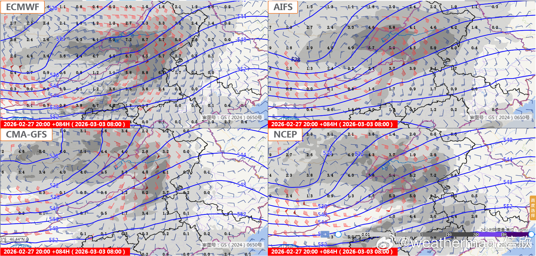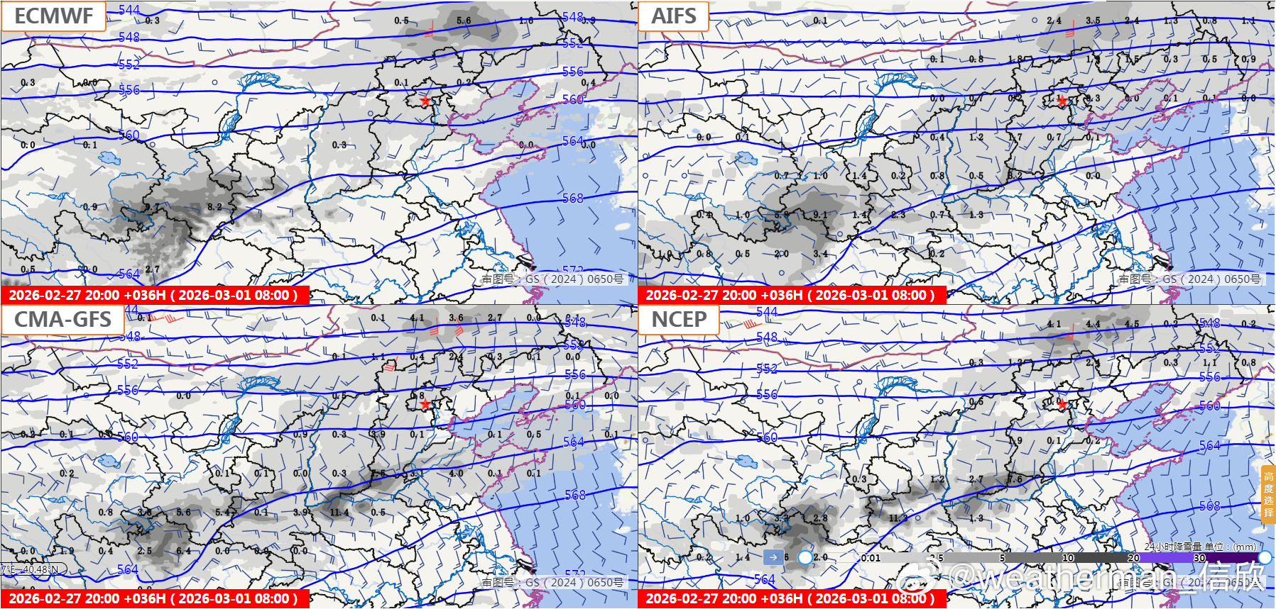 后天在内蒙古东部可能有大雪,这里处于高空槽前,低空有低涡、地面有气旋发展。在系统的右侧,形成明显的水汽输送和辐合抬升。这里的温度够低,就是纯雪。主要变数就是低涡和气旋的强度、位置,影响水汽的输送量和辐合抬升区,导致降雪的强度和大值中心可能微调。